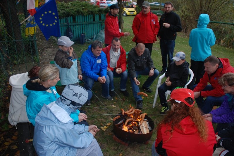 W dniu 18.10.2014r. nasze stowarzyszenie zorganizowało uroczyste zakończenie sezonu żeglarskiego nad Jeziorem Popielewskim. Wśród członków stowarzyszenia na uroczystość przybyli zaproszeni goście: Pan Marian Marciniak gospodarz stanicy rybackiej, kolega Paweł Czudowski Komandor Gnieźnieńskiego Klubu Turystyki Wodnej PTTK Horyzont z Gniezna oraz wiceprzewodniczący Komisju Turystyki Żeglarskiej Zarządu Głównego PTTK w Warszawie i prezes Stowarzyszenia Światowid Zygmunt Nowaczyk. Uroczyste zakończenie sezonu żeglarskiego poprzedził wspólny rejs żeglarski po Jeziorze Popielewskim. Następnie wszyscy uczestnicy zebrali się nad brzegiem jeziora, gdzie została uroczyście podniesiona bandera oraz były wybijane „szklanki” dzwonem. Po przywitaniu wszystkich uczestników prezes Stowarzyszenia pod Żaglami Robert Nawrocki przedstawił działalność stowarzyszenia w 2014 roku. Ten rok był bardzo intensywny jeżeli chodzi o działalność naszego stowarzyszenia, ponieważ zorganizowano 30 spływów kajakowych po rzece Wełna i Mała Wełna w których w sumie brało udział 660 osób. Spływy kajakowe były finansowane przez Stowarzyszenie Światowid z projektu współpracy: "Turystyczny rozwój regionu poprzez tworzenie szlaków kajakowych" programu Leader. Ponadto zorganizowano dwa rajdy rowerowe „Śladami Hipolita Cegielskiego – z historią w tle” oraz „Trzemeszno w chmurach z nutką westernu” w sumie w naszych rajdach brało udział ponad 100 osób. Rajdy rowerowe zostały dofinansowane przez Stowarzyszenie Światowid z Łubowa ze środków Unii Europejskiej osi 4 Leader PROW 2007-2013, działania 4.31 Funkcjonowanie lokalnej grupy działania, nabywanie umiejętności i aktywizacja. Przy współpracy ze Stowarzyszeniem Światowid byliśmy również obecni na imprezie Truskawisko, podczas której na Jeziorze Lednickim zorganizowaliśy rejsy żaglówkami i kajakami. W przygodzie tej wzięło z nami udział ponad 100 osób. Odbył się kurs na patent sternika motorowodnego prowadzony przez Krzysztofa Śniadeckiego wicemistrza świata w klasie T – 550. Zorganizowaliśmy rejsy żaglówkami po Jeziorze Popielewskim, dla dzieci które uczestniczyły w półkoloniach, organizowanych przez Dom Kultury w Trzemesznie. Dużym sukcesem było zdobycie drugiego miejsca naszego kolegi Krystiana Walczaka w konkursie „Opowiedz …” za krótki film: „Bezpieczne wakacje nad wodą”. Konkurs był realizowany w ramach programu Działaj Lokalnie VIII 2013. Spotkanie zostało zorganizowane przez Stowarzyszenie Światowid w Łubowie - Ośrodek Działaj Lokalnie. Ponadto członkowie naszego stowarzyszenia brali udział w regatach Nord Cup 2014, maratonie kajakowym po rzece Wełnie zorganizowany w ramach projektu współpracy przez Lokalne Grupy Działania: Dolina Wełny, Kraina Trzech Rzek i Stowarzyszenie Światowid czy spływie kajakowym po rzece Brdzie w Bydgoszczy. Należy dodać również udział w Targach Sportów Wodnych i Rekreacji WIATR I WODA w Warszawie. Możemy się również poszczycić zakupem trzech jachtów żaglowych oraz przyczepy podłodziowej. Po krótkim streszczeniu naszej działalności głos zabrał kolega Paweł Czudowski, który był pod dużym wrażeniem naszej działalności mimo, że istniejemy zaledwie drugi rok. Wręczył również naszemu koledze Włodzimierzowi Lewandowskiemu proporzec Instruktora Turystyki Żeglarskiej PTTK. My natomiast otrzymaliśmy materiały szkoleniowe dotyczące meteorologii. Następie zabrał głos nasz drugi zaproszony gość Zygmunt Nowaczyk, który podziękował za współpracę i zapewnił o dalszym działaniu na rzecz rozwoju turystyki kajakowej. Po zabraniu głosów wszystkich zaproszonych gości zostały wręczone upominki i podziękowania. Dawidowi Wielgolewskiemu za aktywność w naszym stowarzyszeniu oraz koledze Pawłowi Czudowskiemu, Marianowi Marciniakowi i Zygmuntowi Nowaczykowi za współpracę i pomoc w naszej działalności. Po zrobieniu sobie wspólnego zdjęcia, nastąpiło uroczyste opuszczenie bandery i wybijanie „szklanek”, po czym uczestnicy wspólnie biesiadowali przy ognisku i rozmawiali o planach na przyszły rok. Tym samym sezon żeglarski 2014r. został zamknięty. FILM Z ZAKOŃCZENIA SEZONU ŻEGLARSKIEGO - AUTOR DAWID WIELGOLEWSKI