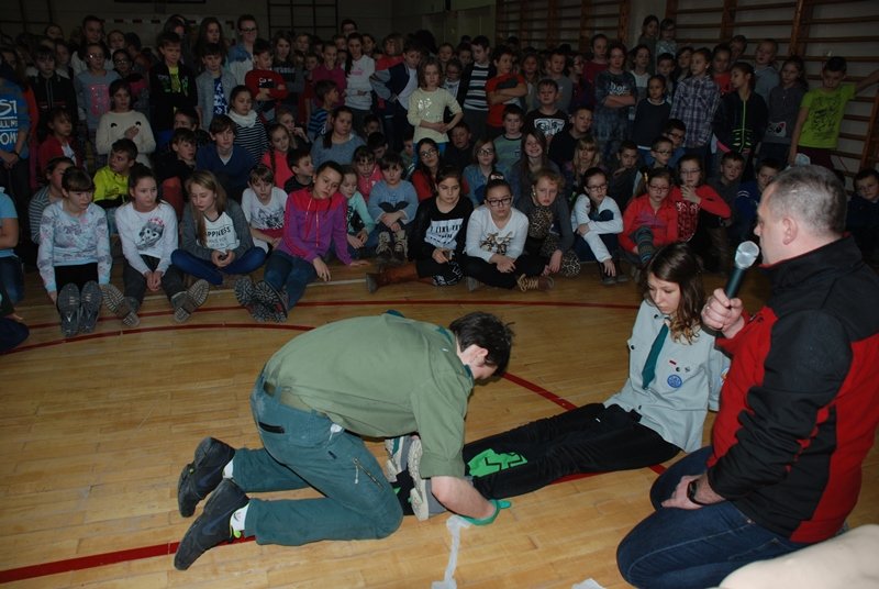 W dniu 30.01.2015r. Stowarzyszenie pod Żaglami z harcerzami ZHP Hufiec Trzemeszno przeprowadziło prelekcje w Szkole Podstawowej nr 1 w Trzemesznie, w ramach zimowej akcji „Bezpieczna Woda”. Ogólnopolskim koordynatorem akcji jest Ministerstwo Sportu i Turystyki we współpracy z Wodnym Ochotniczym Pogotowiem Ratunkowym, Ministerstwem Edukacji Narodowej, Ministerstwem Spraw Wewnętrznych i Ministerstwem Zdrowia, przy wsparciu Komendy Głównej Policji, Centrum Turystyki Wodnej PTTK i Polskiej Organizacji Turystycznej. Z myślą o zbliżających się feriach zimowych nasze stowarzyszenie wraz z harcerzami ZHP Hufiec Trzemeszno rozpoczęło na terenie gminy Trzemeszno akcję edukacyjną, na której są prezentowane podstawowe zasady bezpieczeństwa na zamarzniętych zbiornikach wodnych. W najbliższych dnia tego typu spotkania zostaną przeprowadzone w Szkole Podstawowej nr 2 w Trzemesznie, Szkole Podstawowej w Kruchowie, Szkole Podstawowej w Trzemżalu oraz w Gimnazjum w Trzemesznie. Dzisiejsze spotkanie rozpoczęliśmy od zajęć w klasie zerowej, na której uczniowie dowiedzieli się o podstawowych zasadach bezpieczeństwa, mogli spróbować swoich sił na fantomie, przypomnieć sobie europejski numery alarmowy 112 oraz jakie informacje należy przekazać dyspozytorowi w czasie zgłoszenia wypadku. Następnie zajęcia odbywały się na sali gimnastycznej gdzie w prelekcji uczestniczył klasy 1 – 3, a następnie klasy 4 – 6. Na zakończenie spotkań odbył się konkurs z nagrodami, gdzie uczniowie odpowiadali na pytania związane z akcją „Bezpieczna Woda”. Ponadto każdy uczeń otrzymał materiał edukacyjny związany z akcją „Bezpieczna Woda”. W sumie na dzisiejszych w zajęciach uczestniczyło około 570 uczniów. Dziękujemy dyrekcji szkoły i wychowawcom klas za możliwość zaprezentowania wiedzy i umiejętności z którą chętnie podzieliliśmy się z uczniami.