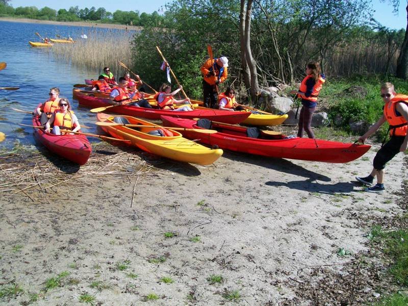 W dniu 07.05.2016r. odbył się pierwszy z „ Cyklu trzech spływów kajakowych po jeziorach Ostrowickim i Popielewskim na terenie gminy Trzemeszno”. Wyjazd o godz. 8.30 z Trzemeszna do malowniczo położonego Bieślina, gdzie przy wspaniałej pogodzie zwodowaliśmy kajaki . Po przeprowadzeniu przez instruktorów szkolenia dotyczącego bezpieczeństwa na wodzie oraz omówieniu regulaminu spływu , dobrano obsady kajakowe. Po krótkiej rozgrzewce wyruszyliśmy wzdłuż rozwiniętej linii brzegowej jeziora Ostrowite. Kierując się z zachodu na południowy- wschód dotarliśmy do miejscowości Ostrowite Prymasowskie i dalej w kierunku Jerzykowa dotarliśmy do stanowiska rozstawianych sieci rybackich, gdzie wykonaliśmy zwrot i dotarliśmy na plażę. Tam była niespodzianka serwowana przez organizatora, były również konkursy z nagrodami. Po krótkim odpoczynku płynęliśmy w kierunku północno -zachodnim mijając po drodze plażę w Ostrowitem. Obserwując przyrodę dotarliśmy do wyspy, która ma swoją historię i legendę. Były tu w minionym stuleciu prowadzone badania archeologiczne, które potwierdziły o istnieniu na wyspie warowni lub grodziska. Krótki spacer po wyspie, podziwianie dzikiej przyrody i powrót do kajaków. Dalej płynęliśmy na północ do końca jeziora, gdzie czekało na nas ognisko z kiełbaskami i napojami. Około godziny 14.00 zakończyliśmy spływ , zrobiliśmy pamiątkowe zdjęcia, podziękowaliśmy sympatycznym gospodarzom za gościnę na zielonej trawce i zdrowo umęczeni wioślarskim wysiłkiem wróciliśmy do domu. W spływie brały udział 23 osoby w tym dzieci, młodzież i dorośli. Spływ był dofinansowany ze środków otrzymanych od Gminy Trzemeszno w ramach projektu dla rozwoju sportu.