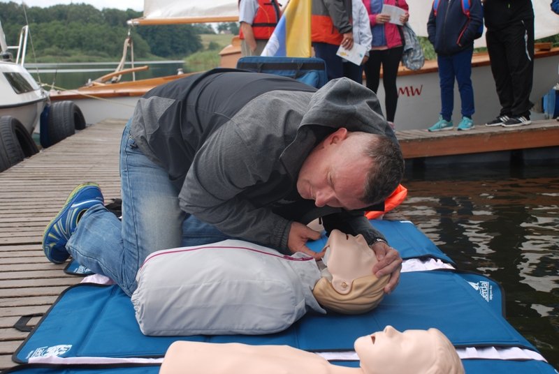 W dniu 3 września br. odbyło się już trzecie i zarazem ostatnie spotkanie nad jeziorem Popielewskim w Trzemesznie w ramach projektu: "ABC pod Żaglami". Głównym celem projektu było zapoznanie uczestników z podstawowymi zasadami żeglowania jak i podniesienie świadomości mieszkańców miasta i gminy Trzemeszno na temat bezpiecznych zachowań nad wodą, w wodzie i na wodzie i popularyzacja tych zachowań. Ponadto chcieliśmy zachęcić wszystkich uczestników to aktywnego wypoczynku i przybliżyć turystykę wodną. Na każdym spotkaniu zanim wyruszyliśmy w rejs wszyscy uczestnicy brali udział w krótkim szkoleniu, na którym zapoznawaliśmy z algorytmem postępowania w sytuacji nagłego zatrzymania krążenia, uczyliśmy podstawowych zasad bezpieczeństwa, prezentowaliśmy zespół zabiegów na fantomach, gdzie również każdy z uczestników miał możliwość przećwiczyć podstawowe zabiegi resuscytacyjne. Następnie uczestnicy byli przydzielani do sternika z którym ruszali w swój pierwszy rejs żeglarski. Po zakończonym rejsie na uczestników czekało ognisko i pieczenie kiełbasek. Był to czas na podzielenie się ze swoimi wrażeniami po rejsie. Planowaliśmy, że w naszym projekcie weźmie udział 45 osób, jednakże zainteresowanie było tak duże, że w sumie wzięło udział 86 osób. Projekt był współfinansowany ze środków Gminy Trzemeszno w ramach zadania publicznego "Wspieranie rozwoju sportu na terenie gminy Trzemeszno w 2017 r."