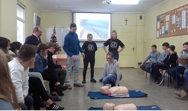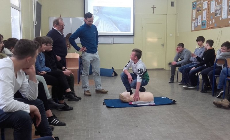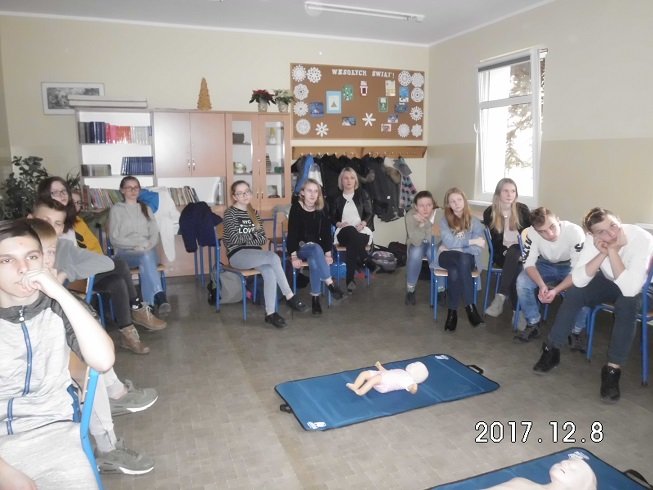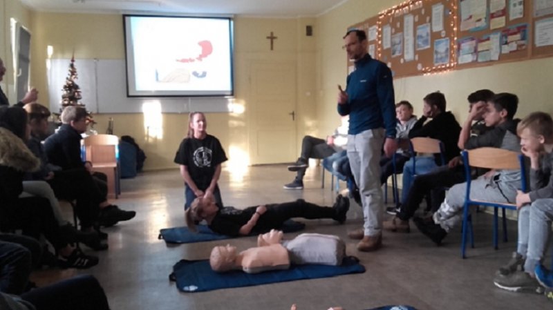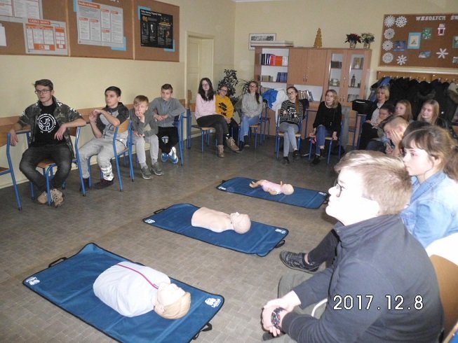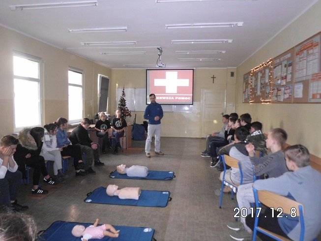 W dniu 8 grudnia 2017r. członkowie Stowarzyszenia Pod Żaglami przeprowadzili kolejną prelekcję z instruktarzem udzielania pierwszej pomocy przedmedycznej oraz zasad bezpiecznego zachowania się na zamarzniętych zbiornikach wodnych. Zajęcia odbyły się w ramach godziny wychowawczej i kierowane były do uczniów klasy II Gimnazjum w Trzemesznie. Inicjatorem spotkania byli rodzice i wychowawczyni klasy, którzy skierowali do Stowarzyszenia pismo o przeprowadzenie takich zajęć. Instruktorzy Stowarzyszenia wykorzystali pomoce dydaktyczne w postaci slajdów pt. „Bezpieczna woda”, fantomów i defibrylatora. Praktyczne czynności w udzielaniu pierwszej pomocy przedmedycznej wspomagały harcerki z Hufca ZHP Trzemeszno, które w tym zakresie posiadają odpowiednie przeszkolenie. Głównym celem zajęć było przywrócenie podstawowych funkcji życiowych. Zajęcia cieszyły się dużym zainteresowaniem ze strony uczniów, którzy zadawali pytania, brali czynny udział w zajęciach praktycznych i podawali przykłady różnych zachowań osób nad wodą oraz w wodzie.