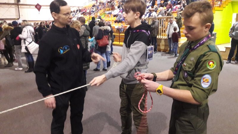 W XXVI Finale Wielkiej Orkiestry Świątecznej Pomocy w Trzemesznie członkowie Stowarzyszenia Pod Żaglami włączyli się aktywnie w zbiórkę funduszy w hali OSiR w Trzemesznie. W niedzielne popołudnie stowarzyszenie uczestniczyło w organizacji finału WOŚP poprzez przeprowadzenie podstawowych zajęć z żeglarstwa tj. zasad bezpieczeństwa nad wodą, budowy i przeznaczenia jachtów żaglowych, wiązania podstawowych węzłów żeglarskich jak również w udzielaniu pierwszej pomocy przedmedycznej z wykorzystaniem fantomów. Atrakcją naszego udziału w finale była również żaglówka odkrytopokładowa typu Omega z pełnym ożaglowaniem, która cieszyła się wielkim zainteresowaniem osób przebywających w hali sportowej. Również podczas zbiórki pieniędzy wśród osób uczestniczących w wielkim finale przeprowadzono różnorodne licytacje m.in. przekazane przez stowarzyszenie dwa vochery na rejs jachtem po Jeziorze Popielewskim i drobne upominki, które wsparły rekordową zebraną kwotę. Stowarzyszenie Pod Żaglami bardzo chętnie wspiera inicjatywy mające na celu wspólne dobro a takim było zebranie funduszy XXVI WOŚP dla "Wyrównania szans w leczeniu noworodków" .