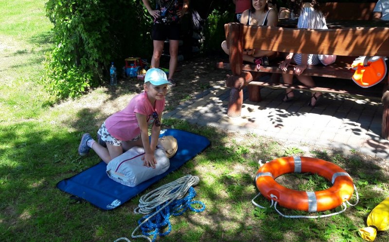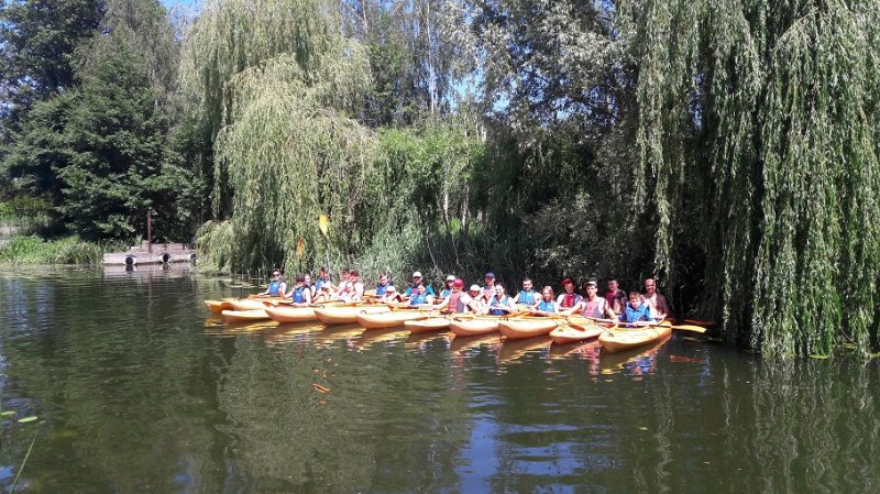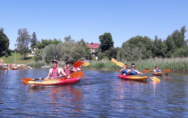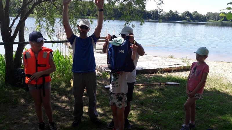 W dniu 09.06.2019r. odbyło się drugie szkolenia zasad pływania kajakiem połączone zei spływem kajakowym po jez. Popielewskim. Przeprowadziliśmy szkolenie tzw. suche, na lądzie z zakresu bezpiecznego przebywania nad wodą, przedstawiliśmy zasady wsiadania i wysiadania z kajaka przy pomoście i z brzegu, zachowanie się w kajaku na jeziorze, zasad płuania kajakiem po jeziorze i po rzecze, posługiwanie się kołem ratunkowym i rzutką ratunkową, zawiązywania węzła ratowniczego oraz zasad prowadzenia pierwszej pomocy. Po przeprowadzeniu rozgrzewki przystąpiliśmy do części praktycznej na wodzie - podejście do pomostu, wysiadanie i wsiadanie do kajaka. Realizując trasę spływu kajakowego po jez. Popielewskim : Rybakówka - Popielewo Stara Chata p. Semrau - kanał wejściowy w Magnolii powróciliśmy do miejsca startu. Około godziny 14.00 zakończyliśmy spływ, przy ognisku omówiliśmy emocje jakie towarzyszyły nam na trasie spływu,upiekliśmy kiełbaski, zrobiliśmy pamiątkowe zdjęcia.