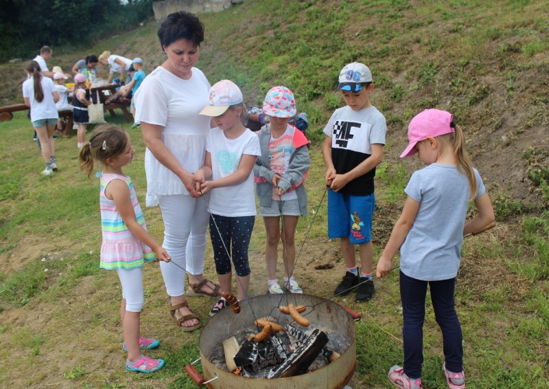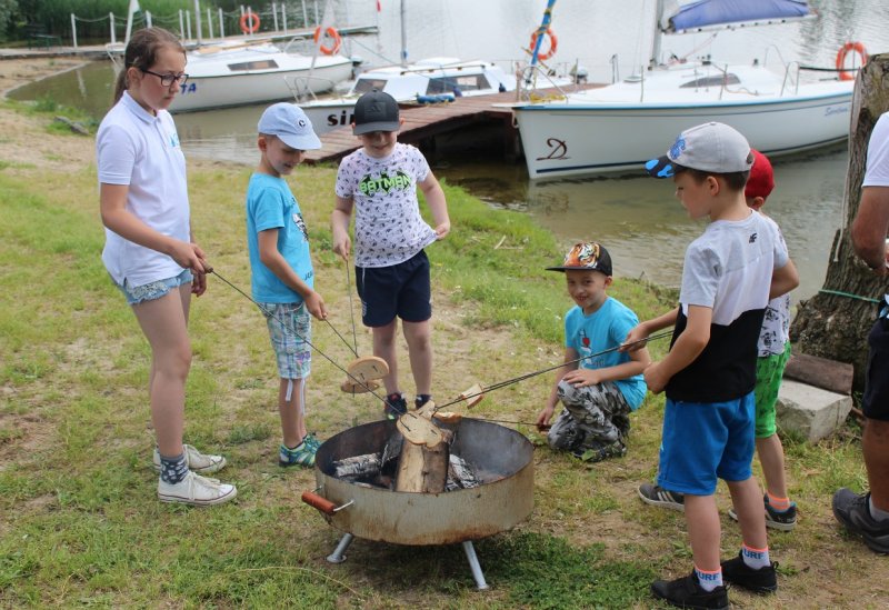 Także nasi milusińscy w podziękowaniu za prelekcję i rejsy jachtami żaglowymi wręczyli sternikom drobne upominki – za co z góry dziękujemy. Nasze wspaniałe spotkanie zakończyło wspólnym ogniskiem, pieczeniem kiełbasek i wspominaniem wspólnym pobytem na wodzie.