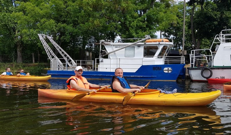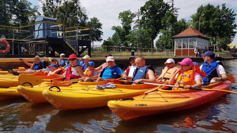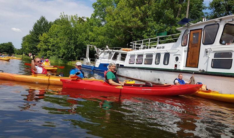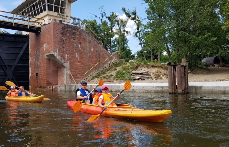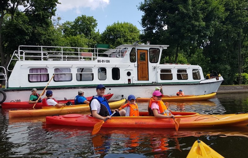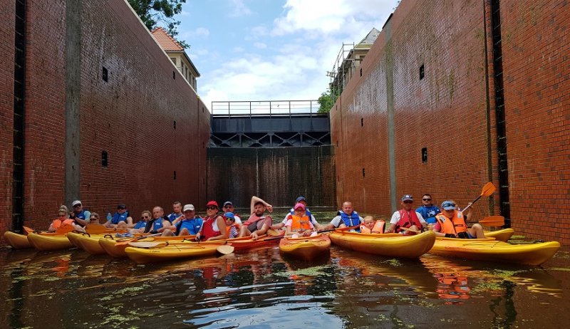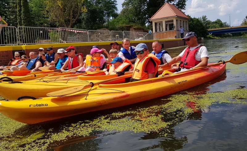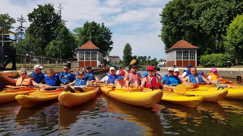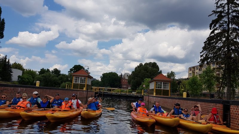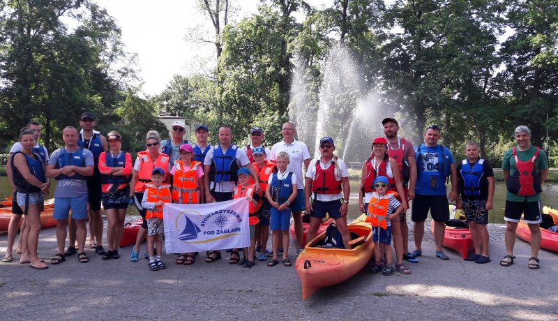W dniu 24.06.2019r. członkowie naszego stowarzyszenie i jego sympatycy obrali kurs na Ster na Bydgoszcz 2019r., połączony ze spływem kajakowym po rzece Brda i Kanale Bydgoskim. Przed rozpoczęciem spływu wszyscy uczestnicy odwiedzili Muzeum Kanału Bydgoskiego, gdzie jego Dyrektor – Pan Tomasz Izajasz z pasją opowiadał o historii powstania Kanału Bydgoskiego. Wykład ilustrowany był różnymi zdjęciami, mapami i makietami przedstawiającymi drogi wodne na terenie Bydgoszczy na przestrzeni dziejów. Następnie przystąpiliśmy do organizacji spływu gdzie na początku przeprowadzono instruktaż i omówiono zasady bezpieczeństwa. Spływ kajakowy rozpoczął się po Starym Kanale Bydgoskim, gdzie później płynęliśmy w kierunku Śluzy Czyżkówko, w  której odbyło się pierwsze śluzowanie kajaków. Kolejną śluzą na naszej drodze była wyremontowana Śluza Okole, następnie na naszym szlaku była śluza Miejska, gdzie po jej śluzowaniu wszyscy udaliśmy się na Wyspę Młyńską, aby uczestniczyć w festiwalu wodnym – Ster na Bydgoszcz. Tegoroczny festiwal był rozszerzony o nową formułę, gdzie zaplanowano szereg atrakcji kulturalnych w klimacie podróżniczo-marynistycznym. Na zakończenie programu wszyscy wspólnie zrobiliśmy zdjęcia pamiątkowe a uczestnicy otrzymali pamiątkowe upominki.