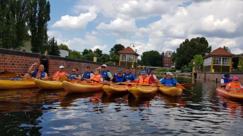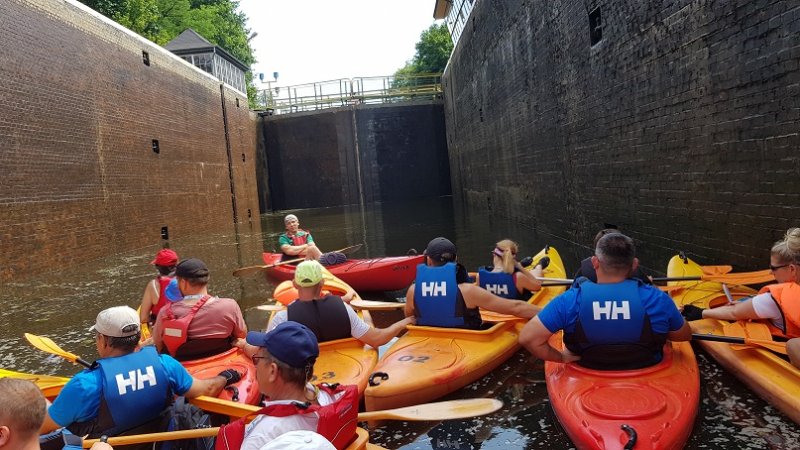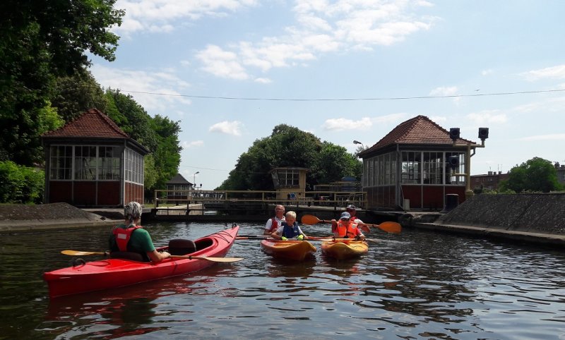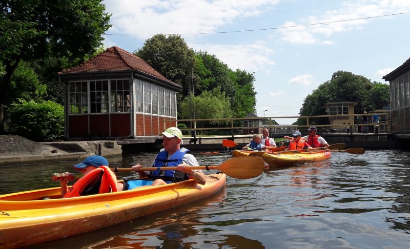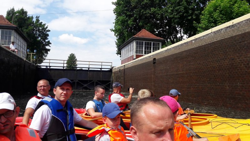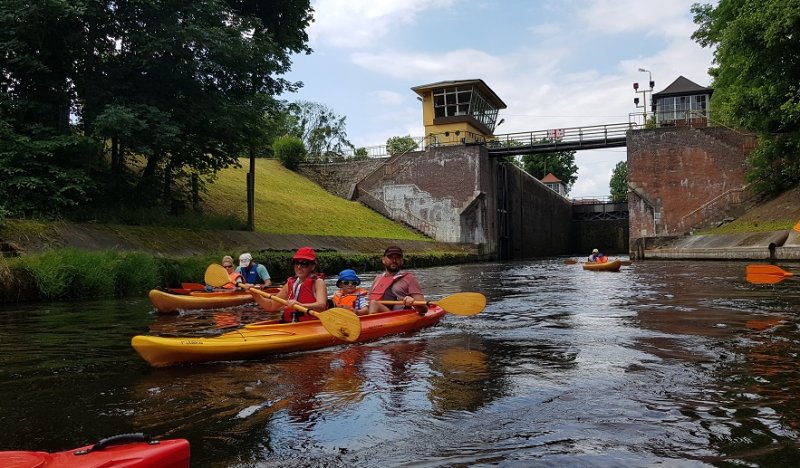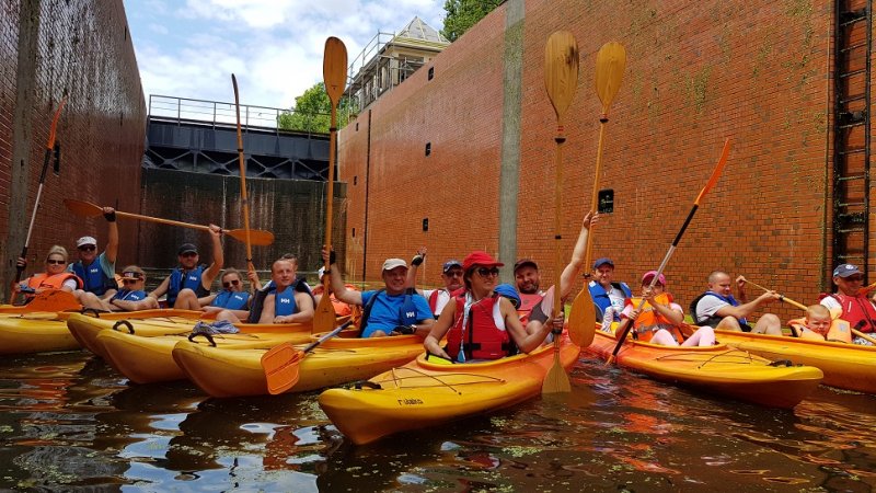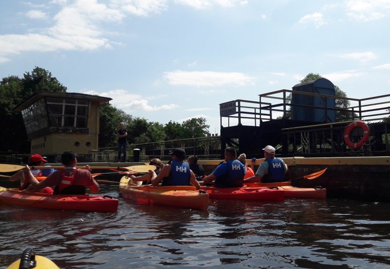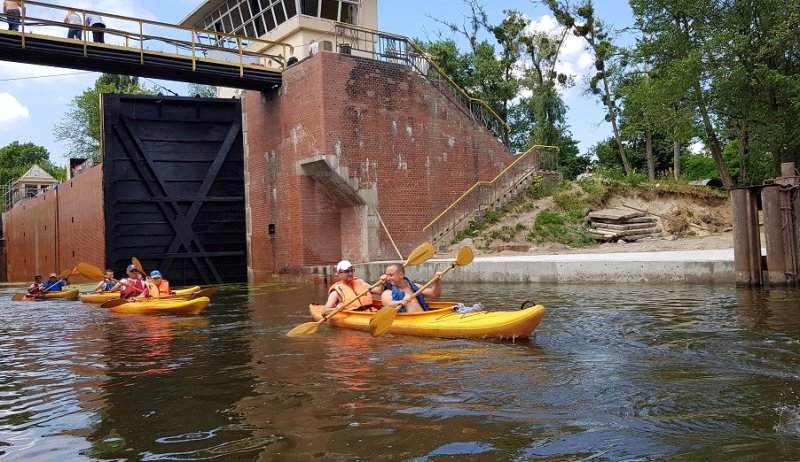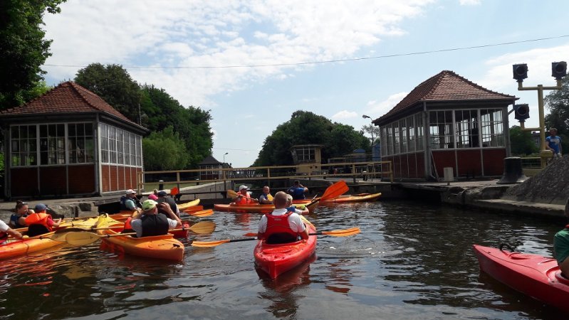 W dniu 24.06.2019r. członkowie naszego stowarzyszenie i jego sympatycy obrali kurs na Ster na Bydgoszcz 2019r., połączony ze spływem kajakowym po rzece Brda i Kanale Bydgoskim. Przed rozpoczęciem spływu wszyscy uczestnicy odwiedzili Muzeum Kanału Bydgoskiego, gdzie jego Dyrektor – Pan Tomasz Izajasz z pasją opowiadał o historii powstania Kanału Bydgoskiego. Wykład ilustrowany był różnymi zdjęciami, mapami i makietami przedstawiającymi drogi wodne na terenie Bydgoszczy na przestrzeni dziejów. Następnie przystąpiliśmy do organizacji spływu gdzie na początku przeprowadzono instruktaż i omówiono zasady bezpieczeństwa. Spływ kajakowy rozpoczął się po Starym Kanale Bydgoskim, gdzie później płynęliśmy w kierunku Śluzy Czyżkówko, w  której odbyło się pierwsze śluzowanie kajaków. Kolejną śluzą na naszej drodze była wyremontowana Śluza Okole, następnie na naszym szlaku była śluza Miejska, gdzie po jej śluzowaniu wszyscy udaliśmy się na Wyspę Młyńską, aby uczestniczyć w festiwalu wodnym – Ster na Bydgoszcz. Tegoroczny festiwal był rozszerzony o nową formułę, gdzie zaplanowano szereg atrakcji kulturalnych w klimacie podróżniczo-marynistycznym. Na zakończenie programu wszyscy wspólnie zrobiliśmy zdjęcia pamiątkowe a uczestnicy otrzymali pamiątkowe upominki.