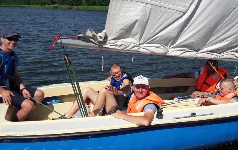 W dniu 30.06.2019r. odbyło się pierwsze spotkanie z cyklu „W zdrowym ciele, zdrowy duch”. Uczestnikami rejsów żaglówkami byli podopieczni Środowiskowego Domu Samopomocy w Trzemesznie. Celem spotkania – projektu była promocja działań profilaktycznych zapobiegających chorobom mającym na celu propagowanie zdrowego i aktywnego stylu życia, podniesienia witalności i odporności poprzez aktywizację ruchową realizowaną rejsami żaglówkami nad jeziorem Popielewskim w Trzemesznie. W trakcie spotkania zaprezentowaliśmy jak aktywnie i zdrowo można spędzać wolny czas na świeżym powietrzu nad wodą. Dodatkowo członkowie stowarzyszenia zaprezentowali zasady ogólno przyjęte bezpieczeństwa nad wodą, w wodzie i na wodzie. Następnie uczestnikom spotkania udzielono stosownego instruktażu, założono odpowiednie kamizelki ratunkowe lub asekuracyjne i wszyscy wypłynęliśmy żaglówkami, kosztując wspaniałych warunków które nam towarzyszyły w trakcie rejsów. Następnie po wspaniałych emocjach żeglarskich wszyscy wspólnie integrowaliśmy się przy ognisku piekąc kiełbaski. Podsumowując nasze spotkanie członkowie naszego stowarzyszenia w sposób szczególny byli bardzo zadowoleni z postawy i odwagi naszych wspaniałych żeglarzy, którzy w znaczący sposób przyczyniają się do chęci realizowania kolejnych przedmiotowych spotkań przez nasze stowarzyszenie.