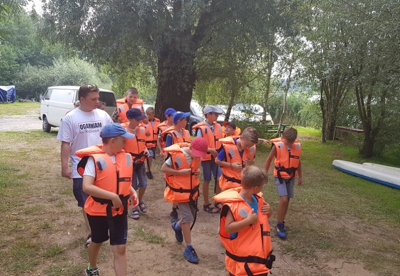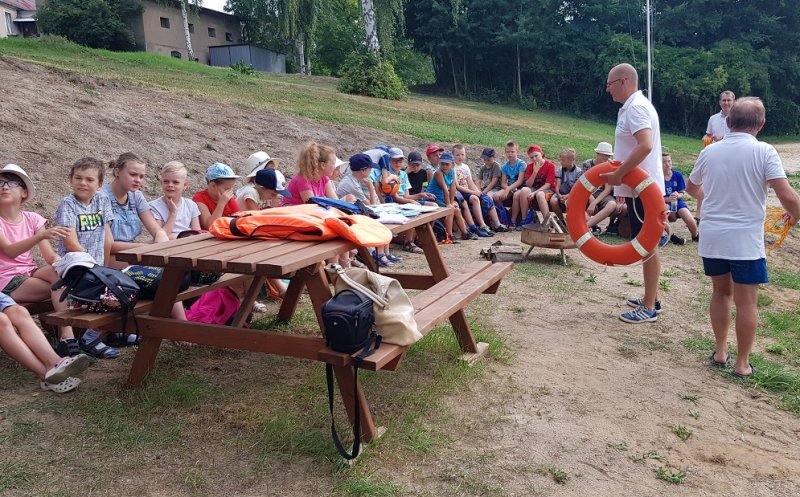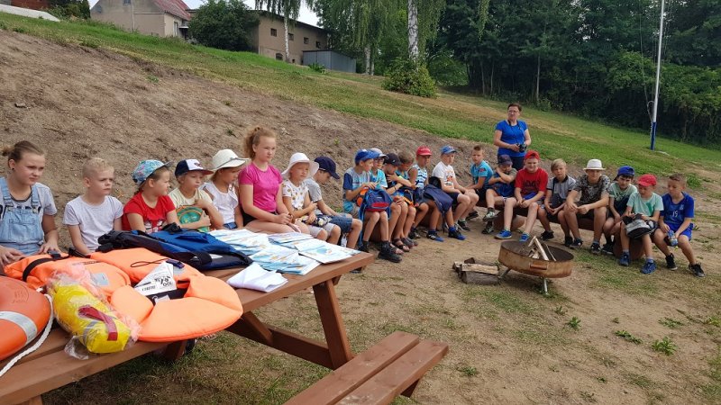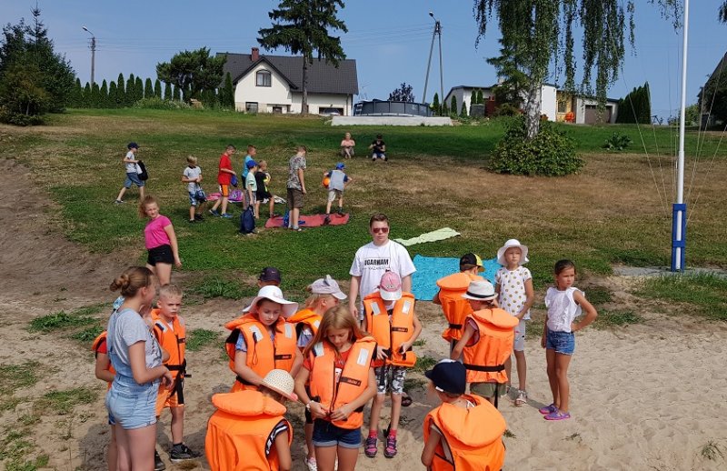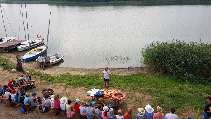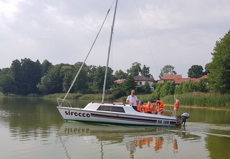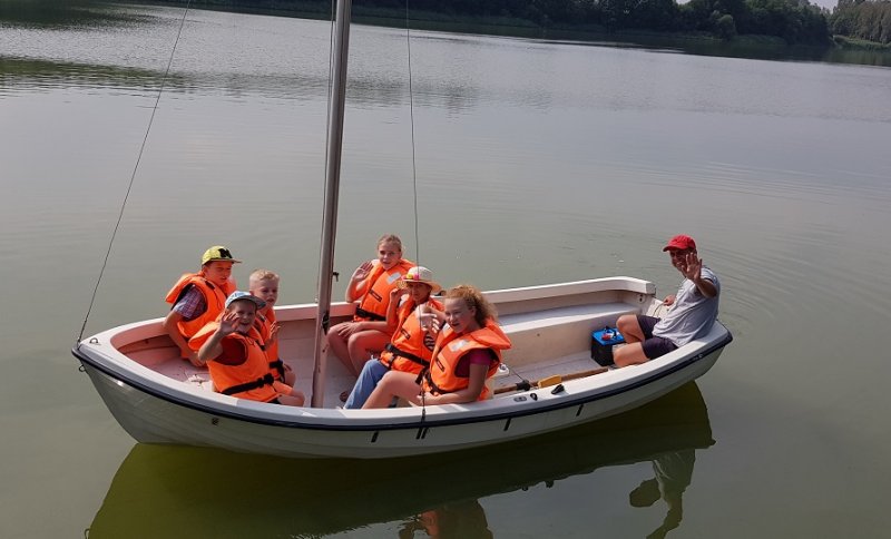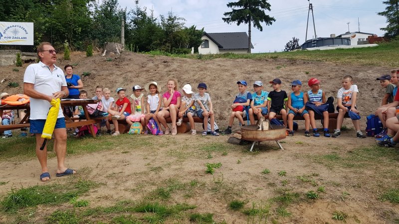 W dniu 30 lipca br. Stowarzyszenie pod Żaglami zorganizowało rejsy żaglówkami po jeziorze popielewskim w Trzemesznie dla dzieci uczestniczących w półkoloniach parafialnych zorganizowanych przez naszą parafię w Trzemesznie. W trakcie spotkania z dziećmi zaprezentowaliśmy jak aktywnie i zdrowo można spędzać wolny czas na świeżym powietrzu nad jeziorem Popielewskim w Trzemesznie oraz przedstawiliśmy zasady bezpieczeństwa nad wodą, w wodzie i na wodzie. Dzieciom uczestniczącym w spotkaniu przypomniano podstawowe numery telefonów alarmowych oraz jakie informacje należy przekazać dyspozytorowi w czasie zgłoszenia wypadku. Każde dziecko otrzymało materiał edukacyjny promujący akcję „Bezpieczna Woda”, którego ogólnopolskim koordynatorem jest Ministerstwo Sportu i Turystyki we współpracy z Wodnym Ochotniczym Pogotowiem Ratunkowym, Ministerstwem Edukacji Narodowej, Ministerstwem Spraw Wewnętrznych i Ministerstwem Zdrowia, przy wsparciu Komendy Głównej Policji, Centrum Turystyki Wodnej PTTK i Polskiej Organizacji Turystycznej. Następnie członkowie stowarzyszenia udzielili stosownego instruktażu, zapoznali z podstawowymi zasadami panującymi podczas żeglowania na jednostkach pływających, bezpiecznych zachowań podczas rejsów i konieczności stosowania kamizelek ratunkowych i asekuracyjnych. Po przeprowadzeniu rejsów żaglówkami zorganizowaliśmy ognisko przy którym wszyscy wspólnie się integrowaliśmy i piekliśmy kiełbaski wspominając doznane wrażenia nad wodą. Szczególne podziękowania kierujemy dla naszych „młodych wilków wodnych” za odwagę i stworzenie wspaniałej atmosfery podczas rejsów pozwalającej bezpiecznie przeprowadzić nasze spotkanie nad jeziorem.