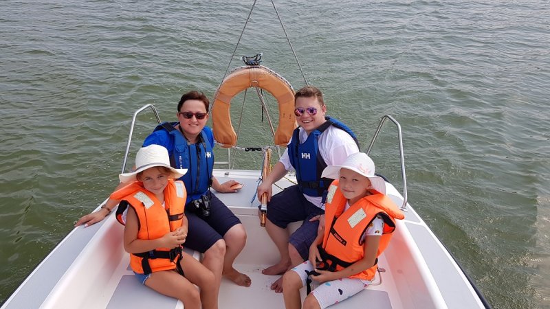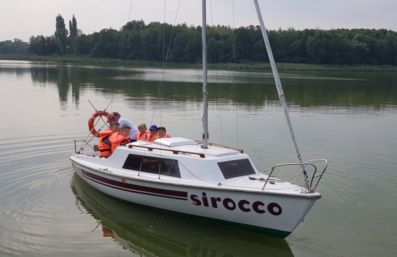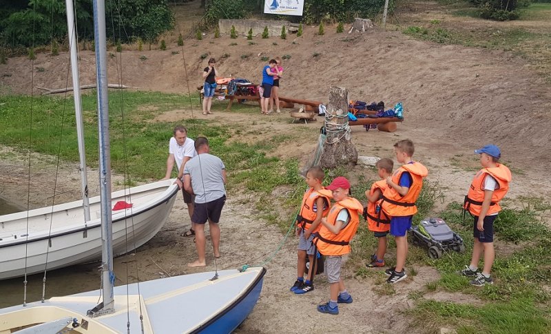 Rejs żaglówkami dla uczestników półkolonii parafialnych.