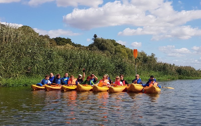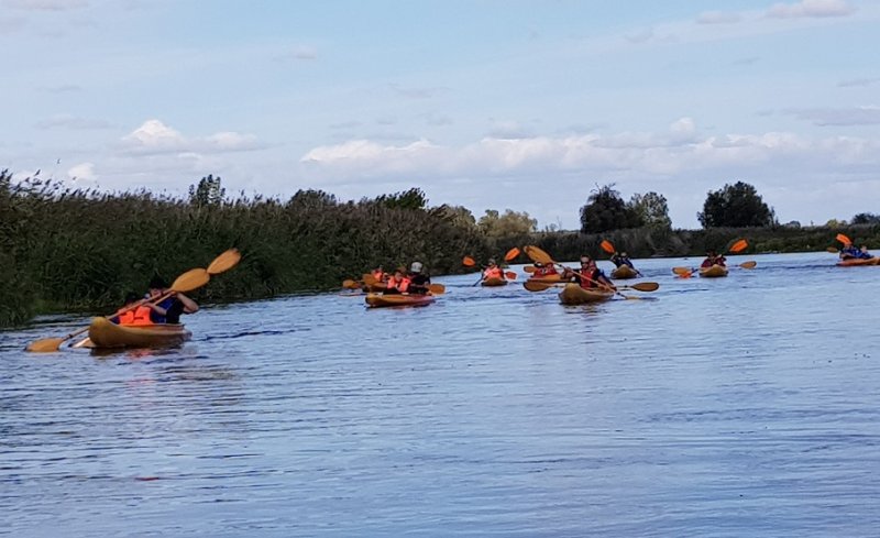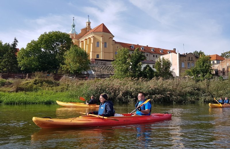 W dniu 14.09.2019r. Stowarzyszenie pod Żaglami zorganizowało spływ kajakowy o długości ok. 18 km po rzece Warcie na trasie Ląd – Pyzdry.  Spływ kajakowy połączony był również ze zwiedzaniem z przewodnikiem opactwa Cystersów w Lądzie w którym znajduje się klasztor Salezjanów. Od 1921 roku  kościół i klasztor jest własnością Salezjanów oraz siedzibą niższego seminarium duchownego Towarzystwa Salezjańskiego. To właśnie Salezjanie dokonali restauracji zniszczonych zabudowań klasztoru adaptując je na cele dydaktyczne w miejscowości Ląd. W roku 2009 zespół dawnego opactwa cystersów został uznany przez Prezydenta RP za Pomnik historii. Uczestnicy spływu w czasie zwiedzania szczegółowo zapoznali się historią powstania zespołu klasztornego  i znajdujących się tam zabytków m.in. kościoła  pw. NMP i św. Mikołaja klasztoru, ogrodu klasztornego wraz z podwórzem gospodarczym, z pięknymi freskami, stiukami i polichromiami zdobiącymi klasztor. Następnie po zwiedzaniu dokonaliśmy wodowania kajaków, przeprowadziliśmy stosowny instruktaż z zasad bezpieczeństwa podczas spływu rzeką i rozgrzewkę mającą na celu przygotowanie do rozpoczęcia spływu. Trasa spływu kajakowego obejmowała następujące miejscowości Ląd – Ciążeń – Dłusk - Pyzdry i trwała ok. 4 godzin. W czasie spływu uczestnicy podziwiali piękne widoki Nadwarciańskiego Parku Krajobrazowego oraz trzeciej co do długości rzeki Polski jaką jest rzeka Warta. Spływ zakończyliśmy w marinie – Pyzdry, gdzie wszyscy poszliśmy na wspólny posiłek, przy którym omawialiśmy i wspominaliśmy trasę spływu kajakowego. Na zakończenie wszyscy uczestnicy spływu otrzymali od organizatorów upominek wieńczący nasz wspólny spływ kajakowy.