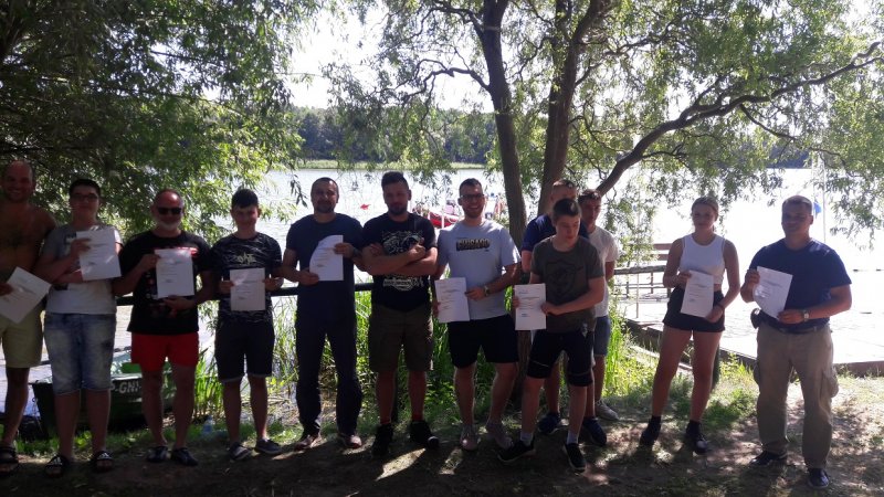 Kurs sternika motorowodnego - II edycja W dniach 15/16.08.2020 r. nad jeziorem Popielewskim w Trzemesznie Stowarzyszenie pod Żaglami zorganizowało kolejny kurs na patent sternika motorowodnego. Tym razem w szkoleniu wzięło udział 15 uczestników i składało się z dwóch części: teoretycznej i praktycznej. Kurs został przeprowadzony przez instruktora motorowodnego - Piotra Zagajewskiego, który w sposób odpowiedni i profesjonalny zapoznał przyszłych sterników motorowodnych z zasadami pływania na wodach. Część teoretyczna składała się z wykładu przedstawionego za pomocą slajdów a praktyka została przeprowadzona na wodzie jachtem motorowodnym typu RIB. Uzyskane uprawnienia - patent sternika motorowodnego, dają duże możliwości do prowadzenia jest jachtów motorowodnych. W przeprowadzonych dwóch kursach uprawnienia motorowodne zdobyło w sumie 26 uczestników, co pozytywnie pozwala ocenić duże zainteresowanie sportami wodnymi. Na zakończenie obydwu kursów motorowodnych stowarzyszenie pod żaglami przy współudziale UMiG w Trzemesznie podziękowało komisji egzaminacyjnej i instruktorowi drobnymi upominkami promującymi naszą gminę Trzemeszno za profesjonalne przygotowanie i przeprowadzenie egzaminu państwowego i kursu motorowodnego. Gratulujemy wszystkim uczestnikom szkolenia za zdobyte uprawniania motorowodne, dziękujemy za właściwe zaangażowanie się w proces szkolenia i stworzenia motorowodnej atmosfery. Wszystkim świeżo upieczonym sternikom motorowodnym życzymy bezpiecznego pływania i " Stopy wody pod kilem" - Ahoj