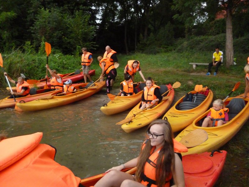 Spływ kajakowy po jeziorze Ostrowickim . W dniu 23 sierpnia 2020 roku odbył się drugi spływ kajakowy, tym razem po jeziorze Ostrowickim na terenie gminy Trzemeszno. Wyjazd o godz. 9.00 z Trzemeszna z postoju PKS na ul. Gen. Dąbrowskiego, do malowniczo położonego Bieślina, gdzie przy wspaniałej pogodzie zwodowaliśmy kajaki. Instruktorzy przeprowadzili szkolenie dotyczące bezpieczeństwa na wodzie, omówili zasady regulaminu spływu oraz technikę wiosłowania. Na koniec instruktarzu dobrano obsady kajakowe. Po krótkiej rozgrzewce wyruszyliśmy wzdłuż rozwiniętej linii brzegowej jeziora Ostrowickiego. Kierując się z zachodu na wschód a następnie obierając kurs na wyspę przy lekkim wietrze i małej fali na wodzie. Obserwując przyrodę dotarliśmy do wyspy, która ma swoją historię i legendę. Były tu w minionym stuleciu prowadzone badania archeologiczne, które potwierdziły o istnieniu na wyspie warowni lub grodziska. Krótki spacer po wyspie, podziwianie dzikiej przyrody i powrót do kajaków. Następnie obraliśmy kurs na plażę w Ostrowitem. Po krótkim odpoczynku płynęliśmy na północ do dzikiej przystani u Pana Zaręby. Po wysłuchaniu informacji na temat historii tego terenu z ust Pani Krystyny Krause, popłynęliśmy do końca jeziora, gdzie czekało na nas ognisko z kiełbaskami i napojami. Około godziny 14.20 zakończyliśmy spływ, zrobiliśmy pamiątkowe zdjęcia, podziękowaliśmy sympatycznym gospodarzom za gościnę na zielonej trawce i zdrowo umęczeni wioślarskim wysiłkiem wróciliśmy do domu. W spływie brało udział 21 osób w tym dzieci, młodzież i dorośli.