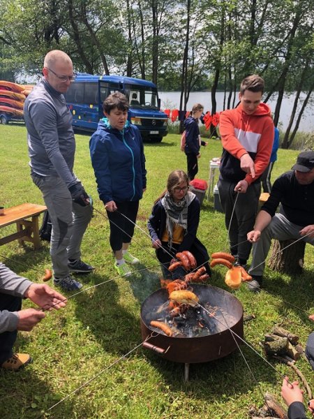 W dniu 29 maja 2021 roku odbył się pierwszy z „ Cyklu dwóch spływów kajakowych po jeziorach Ostrowickim i Popielewskim na terenie gminy Trzemeszno”. Wyjazd o godz. 9.00 z Trzemeszna z postoju PKS na ul. Gen. Dąbrowskiego, do malowniczo położonego Bieślina, gdzie przy wspaniałej pogodzie zwodowaliśmy kajaki. Instruktorzy przeprowadzili szkolenie dotyczącego bezpieczeństwa na wodzie, omówili zasady regulaminu spływu oraz technikę wiosłowania. Na koniec instruktarzu dobrano obsady kajakowe. Po krótkiej rozgrzewce wyruszyliśmy wzdłuż rozwiniętej linii brzegowej jeziora Ostrowite. Kierując się z zachodu na wschód a następnie obierając kurs na wyspę przy wzmagającym wietrze i fali na wodzie. Obserwując przyrodę dotarliśmy do wyspy, która ma swoją historię i legendę. Były tu w minionym stuleciu prowadzone badania archeologiczne, które potwierdziły o istnieniu na wyspie warowni lub grodziska. Krótki spacer po wyspie, podziwianie dzikiej przyrody i powrót do kajaków. Dalej płynęliśmy w kierunku plaży w Ostrowitem gdzie instruktorzy obdarowali uczestników słodką niespodzianką oraz zaproponowali krótki odpoczynek . Po nabraniu sił popłynęliśmy do końca jeziora, gdzie czekało na nas ognisko z kiełbaskami i napojami. Około godziny 14.00 zakończyliśmy spływ , zrobiliśmy pamiątkowe zdjęcia, podziękowaliśmy sympatycznym gospodarzom za gościnę na zielonej trawce i zdrowo umęczeni wioślarskim wysiłkiem wróciliśmy do domu. W spływie brało udział 21 osób w tym dzieci, młodzież i dorośli. Następny spływ odbył się 24 lipca 2021 roku. Po rutynowym wstępie który zawiera część instruktarzową oraz rozgrzewkę w formie gimnastyki przystąpiliśmy do dobrania obsad kajakowych i wydania kamizelek asekuracyjnych i ratunkowych. Trasa wiodła tym razem w kierunku Bystrzycy, przystani w Popielewie, Zielenia – Młyn i powrót na rybakówkę w Trzemesznie. Sprzyjająca pogoda zachęcała do relaksującego wiosłowania podczas którego obserwowaliśmy przyrodę oraz powstającą nową zabudowę wzdłuż linii brzegowej. Tradycyjnie na zakończenie były kiełbaski tym razem z grilla. Spływ był dofinansowany przez Urząd Miasta w Trzemesznie w ramach projektu dla rozwoju sportu.