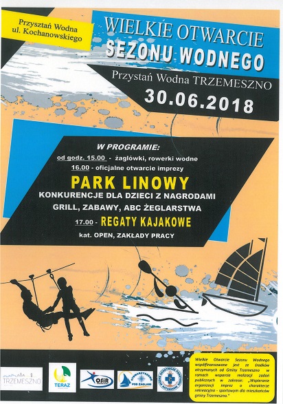 Zapraszamy miłośników sportów wodnych do udziału w otwarciu sezonu wodnego w Trzemesznie w dniu 30.06.2018r. na Przystani Wodnej ul. Kochanowskiego.