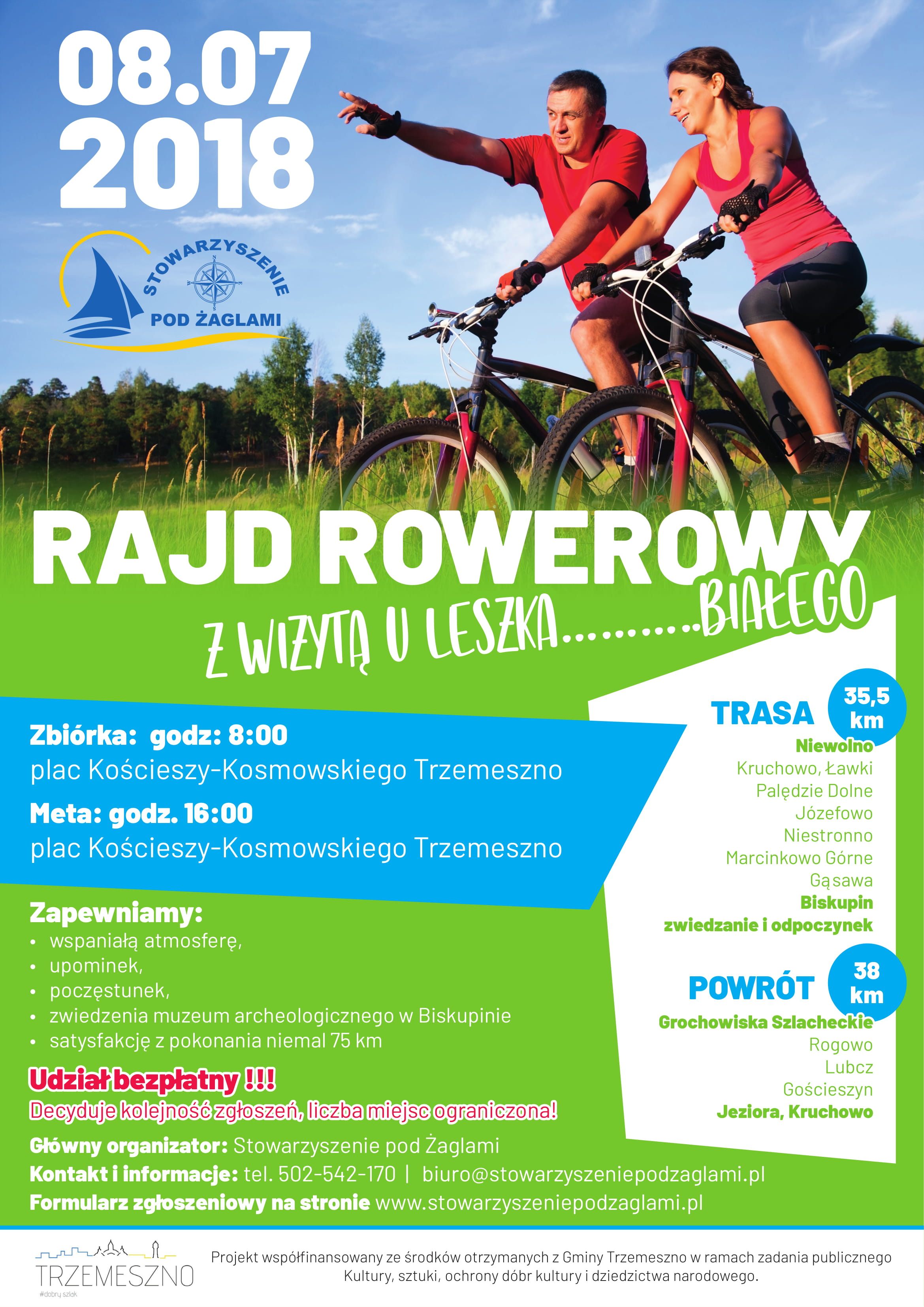 Stowarzysznie Pod Żaglami zaprasza miłośników turystyki rowerowej na raj rowerowy "Z wizytą u Leszka .. Białego" który startuje w dniu 08.07.2018r. o godz. 8,00 z Trzemeszna