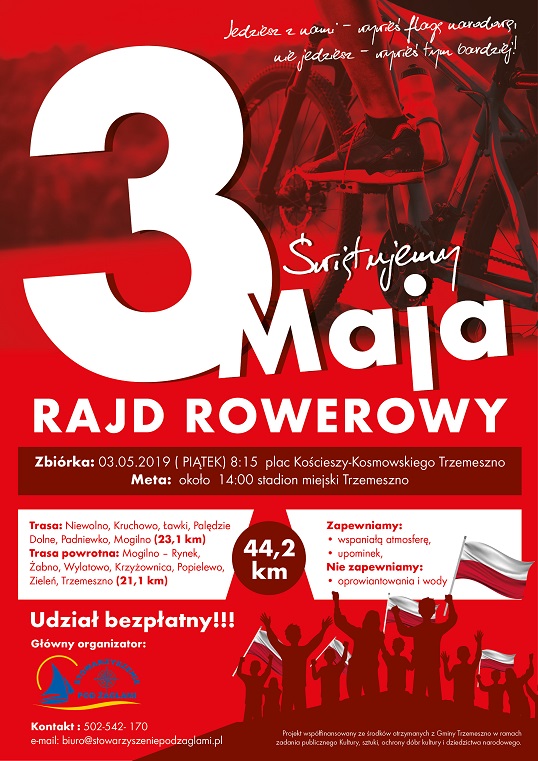 Storarzysznie pod Żaglami zaprasza miłośników turystyki rowerowej na pierwszy rajd rowerowy z cykłow rajdów po ziemi gminy Trzemeszno finansowany z środków publicznych. |