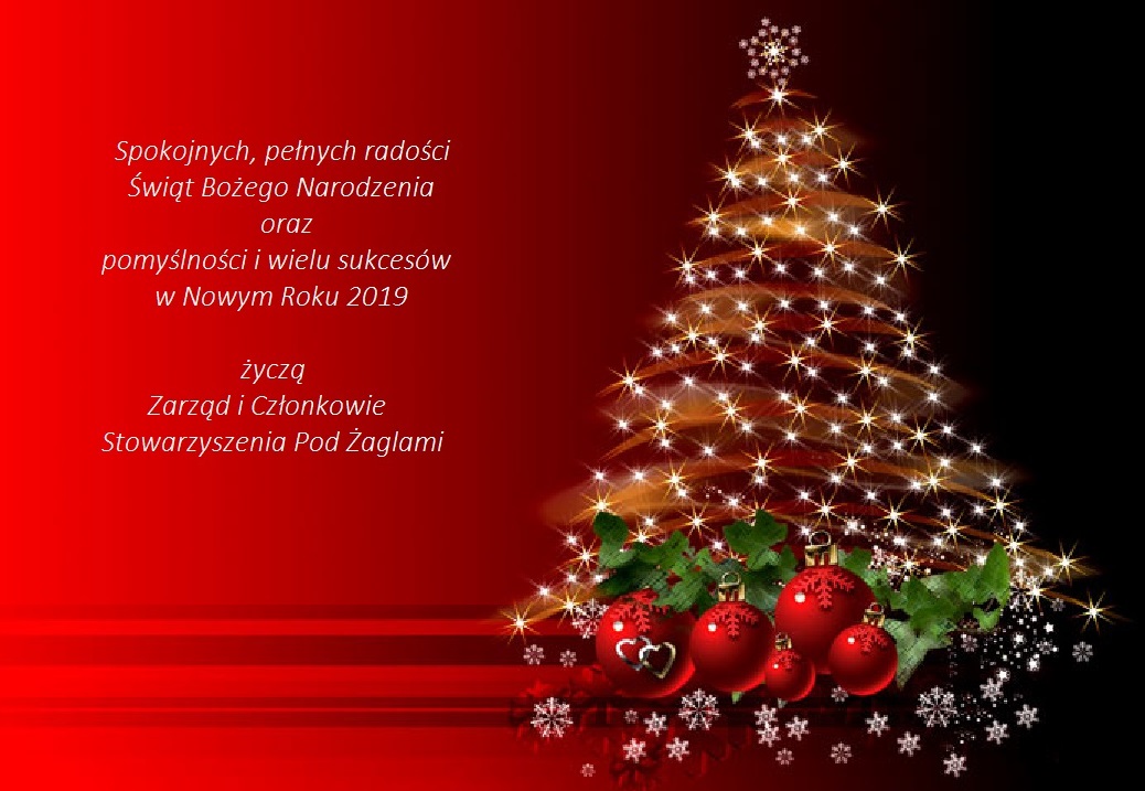 Zarzad i Członkowie Stowarzyszenia Pod Żaglami skłądają sympatykom turystyki wodnej i rowerowej życzenia spokojnych i radosnych Świąt Bożego Narodzenia oraz pomyślności w Nowym Roku 2019