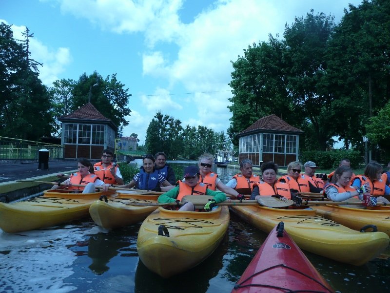 Za nami trzecia już wyprawa kajakowa do Bydgoszczy. 18 czerwca uczestniczyliśmy w paradzie jednostek pływających podczas jednego z największych wodnych festiwali w Polsce - IX Steru na Bydgoszcz. Zanim jednak przystąpiliśmy do parady, która zaczęła się o godz. 17:00 od rana czekało nas sporo atrakcji… Około godziny 9:30 rozpoczęliśmy spływ w Kruszyńcu koło Bydgoszczy. Tym razem trasa spływu w głównej mierze przebiegała przez Kanał Bydgoski. Rozpoczęliśmy z miejsca, gdzie Górna Noteć wpływa do Kanału Bydgoskiego, następnie dopłynęliśmy do pierwszej śluzy na naszej trasie, czyli do Śluzy Osowa Góra. Pierwsze śluzowanie przebiegło bardzo sprawnie, podobnie następne na Śluzie Prądy. Obie śluzy umożliwiły podnoszenie jednostek pływających o ponad 3 m i obie powstały w XVIII w. Kolejną śluzą na naszej drodze była Śluza Czyżkówko oraz Śluza Okole obie oddane do użytku w 1915 r. i obie są jednymi z najwyższych śluz w Polsce. Ponadto Śluza Okole była jedną z scenerii jednego (bądź dwóch) z odcinków serialu Czterej pancerni i pies. Ostatnią śluzą na naszym szklaku była Śluza Miejska. Podczas spływu mieliśmy możliwość poznawania wiele ciekawostek dotyczących kanału bydgoskiego jak i wszystkich śluz na trasie, a wszystko to dzięki Panu Tomaszu Izajaszowi – dyrektorowi Muzeum Kanału Bydgoskiego, który wspólnie z nami spędził sobotnie przedpołudnie w kajaku. Po zakończeniu spływu tradycyjnie udaliśmy się do Kubryka, gdzie posililiśmy się i nabraliśmy sił na dalszy ciąg wieczoru. Z uwagi na szereg imprezy towarzyszących czekało na nas wiele atrakcji na Wyspie Młyńskiej, m.in. koncerty, wodne pokazy czy zabawy dla dorosłych i dzieci. Dziękujemy wszystkim uczestnikom spływu i zapraszamy do obejrzenia galerii oraz filmu z parady jednostek pływających. Około 16 minuty startuje nasza grupa kajakarzy. https://www.youtube.com/watch?v=ghd785Wo2L4 Przedstawiamy jeszcze film z naszej perspektywy i przedstawiający naszą sobotnią przygodę : https://www.youtube.com/watch?v=YbUF9_mOFp4&feature=youtu.be I na koniec w ramach przypomnienia link do publikacji pokazujący historię i piękno Kanału Bydgoskiego : Serdecznie zapraszamy do zapoznania się z publikacją i obejrzenia obszernej foto-relacji