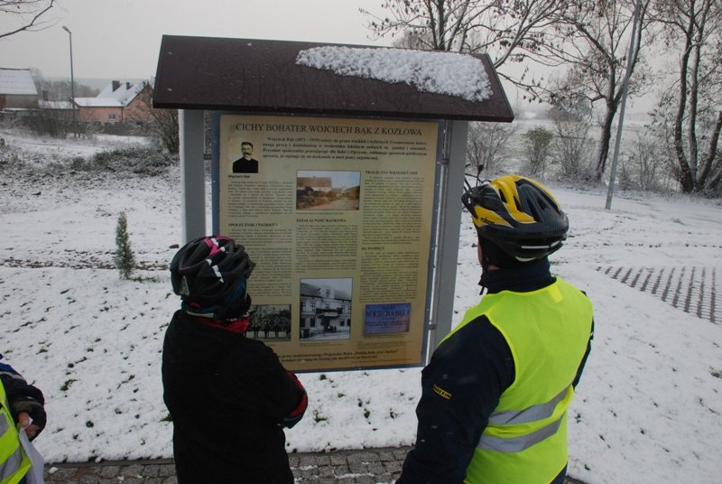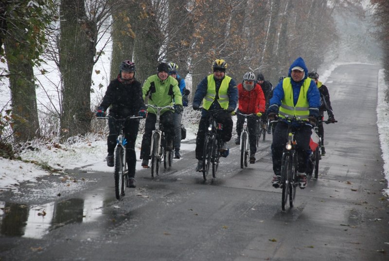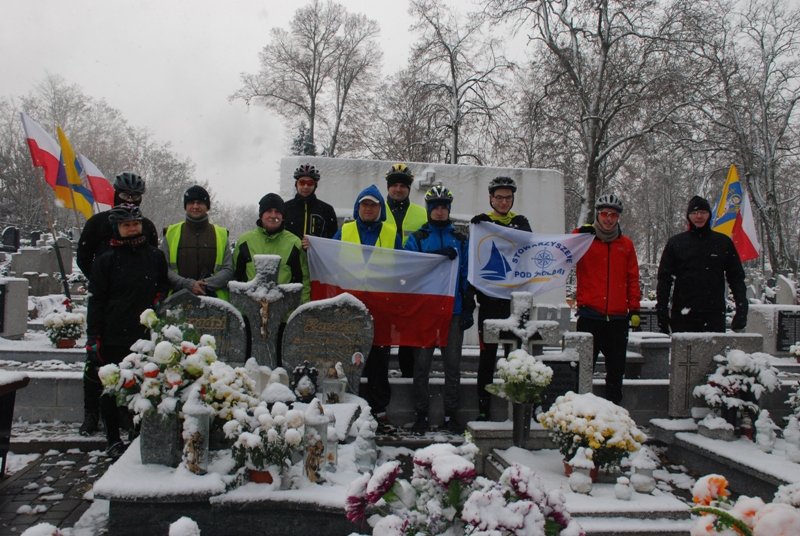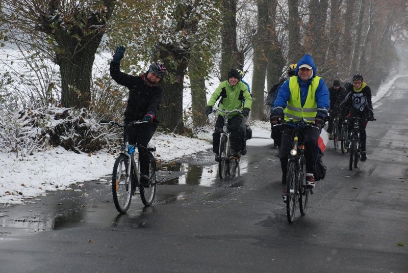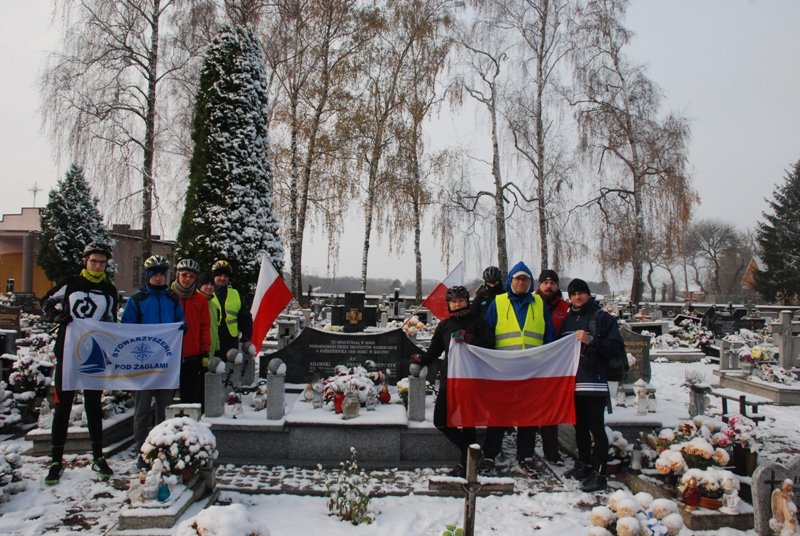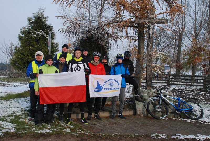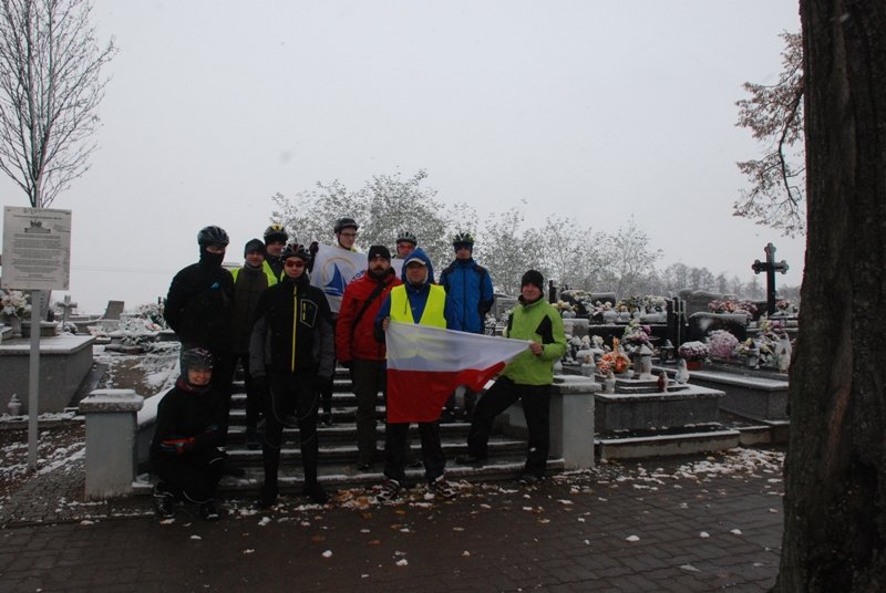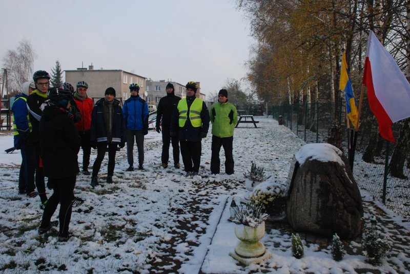 Z okazji Narodowego Święta Niepodległości dla upamiętnienia odzyskania przez Polskę niepodległości w 1918 roku nasze stowarzyszenie zorganizowało III tematyczny rajd rowerowy w ramach projektu „Z historią w tle”. W tym roku pomimo wręcz zimowej aury najbardziej wytrwali cykliści wyruszyli w 28 kilometrowy rajd trasą, która biegła przez miejsca pamięci narodowej. Na terenie naszej gminy znajdują się miejsca, które upamiętniają osoby walczące w Powstaniu Wielkopolskim czy biorące czynny udział w walce z okupantem hitlerowskim w czasie II Wojny Światowej. Rajd rozpoczął się zbiórką na pl. Kosmowskiego w Trzemesznie, gdzie omówiono zasady bezpieczeństwa. Następnie udaliśmy się na cmentarz w Trzemesznie, gdzie zatrzymaliśmy się przed zbiorowym grobem poległych powstańców z 1848 roku, pomnikiem ofiar najazdu hitlerowskiego oraz przy pomniku zbiorowej Mogile Powstańców, którzy polegli 10 kwietnia 1848 roku. Kolejno uczestnicy ruszyli do Kozłowa, gdzie zatrzymali się przy pomniku upamiętniającym osobę Wojciecha Bąka. Z Kozłowa ruszyliśmy do Kruchowa, gdzie znajduje się zbiorowa mogiła, w której spoczywa 7 mieszkańców Kruchowa i Grabowa, zamordowanych przez hitlerowców 5 października 1939r. w Kociniu. Następnie wyruszyliśmy do Wydartowa, gdzie znajduje się pomnik upamiętniający miejsce rozstrzelania przez Niemców 11 września 1939r. 8 osób, członków Straży Obywatelskiej. Kolejno uczestnicy udali się w kierunku Niewolna, gdzie zatrzymali się przed pomnikiem poświęcony pamięci 19 obrońców Niewolna i Trzemeszna rozstrzelanych 10 września 1939r. Następnie nasza koleżanka Aśka poprowadziła grupę rowerzystów w kierunku obelisku usytuowanego przy placu zabaw, który jest poświęcony pamięci pomordowanych mieszkańców. Rajd zakończyliśmy przy ciepłej kawie i herbacie oraz rogalach świętomarcińskich w świetlicy wiejskiej w Niewolnie. Dziękujemy sołtysowi wsi niewolno za udostępnienie świetlicy. Serdecznie dziękujemy wszystkim uczestnikom za udział w naszym rajdzie i zapraszamy już na kolejny rajd rowerowy, który odbędzie się 31 grudnia br. Rajd był sfinansowany ze środków otrzymanych z Gminy Trzemeszno w ramach zadania publicznego "Podtrzymywanie tradycji narodowych, pielęgnowanie polskości oraz rozwoju świadomości narodowej, obywatelskiej, kulturowej mieszkańców Trzemeszna". https://www.endomondo.com/users/11374703/workouts/833921155