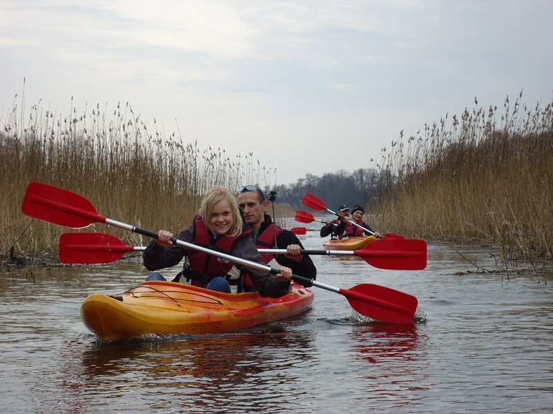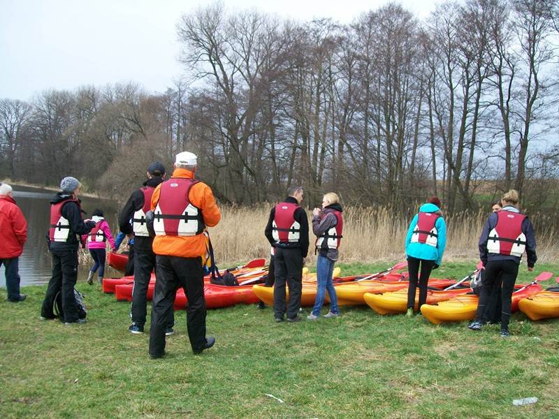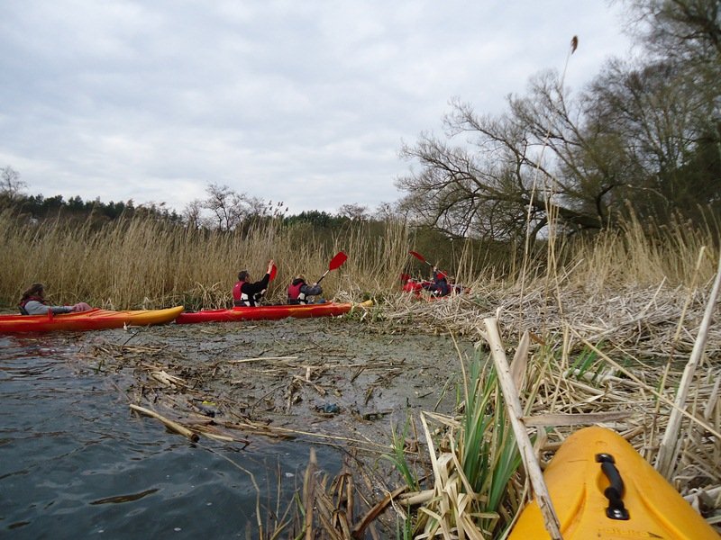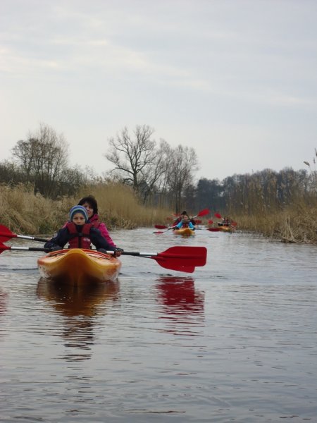 W dniu dzisiejszym tj. 22.03.2014 r. rozpoczęliśmy naszą przygodę z kajakami na rzece Wełnie. Spływ kajakowy rozpoczeliśmy z brzegu jeziora Strzyżewskiego w miejscowości Strzyżewo Kościelne. Pomimo zachmurzonego nieba i kilku kropel deszczu wszyscy dopisali i stawili się na miejsce startu. Uczestnicy spływu zostali zapoznani z regulaminem i podzieleni w pary. Następnie komandor spływu: Dariusz Walczak przeprowadził instruktarz z zasad bezpieczeństwa na wodzie i przedstawił trasę spływu. Ruszyliśmy w spływ po rzece Wełnie. Przepływaliśmy przez jezioro Piotrowskie, Ławiczno i Biskupiec - obserwując budzącą się do życia przyrodę, ślady obecności bobrów i różne gatunki ptactwa wodnego. Nie mogliśmy narzekać na brak wrażeń ze względu na przeszkody w postaci nisko nad wodą kładących się konarów drzew oraz trzciny wodnej. Szczęśliwie dotarliśmy aż do Drogoradu - mety spływu. Pogoda i dobry humor dopisał. Na miejscu rozpaliliśy ognisko i posililiśmy się pysznymi, smażonymi kiełbaskami. Kolejny spływ do rzece Wełnie już za tydzień. Serdecznie zapraszamy na kolejne spływy po rzece Wełnie zaplanowane na terminy: 05 i 12 kwietnia oraz 01,02,03 i 04 maja. Więcej informacji znajduje się: http://www.stowarzyszeniepodzaglami.pl/rejsy/640-splywy-kajakowe-po-rzece-malej-welna