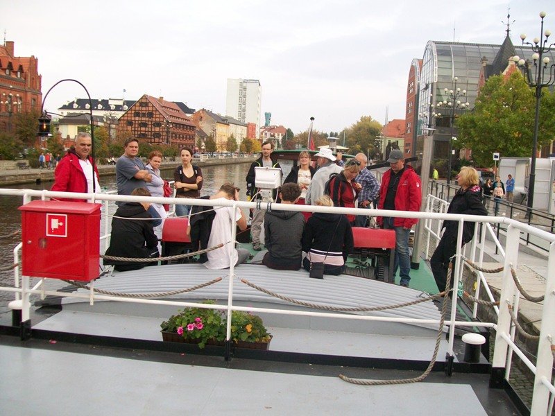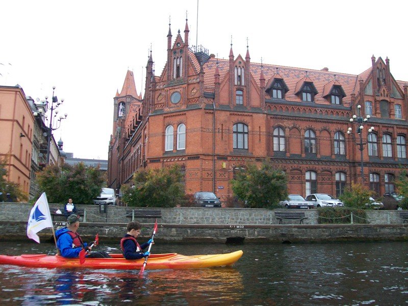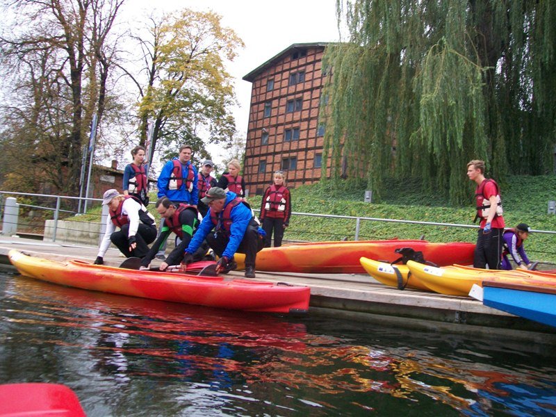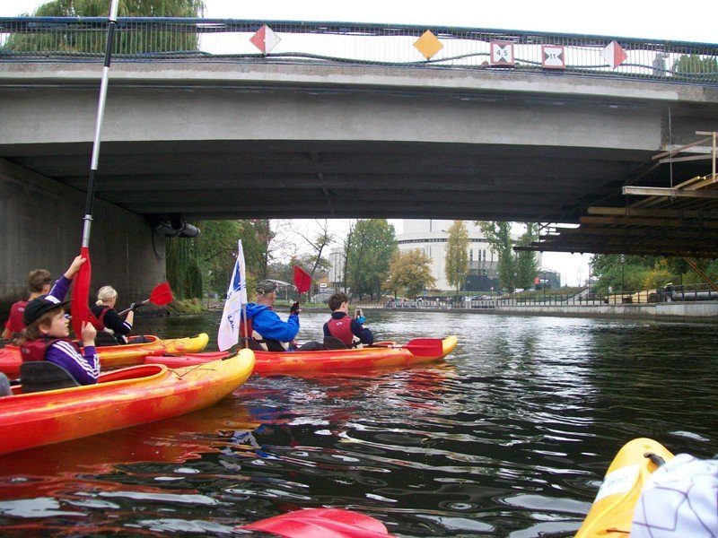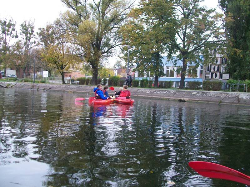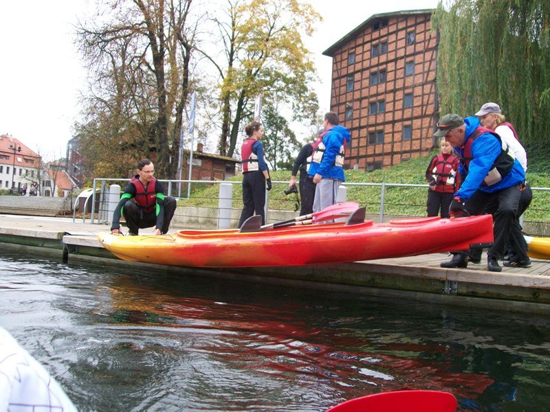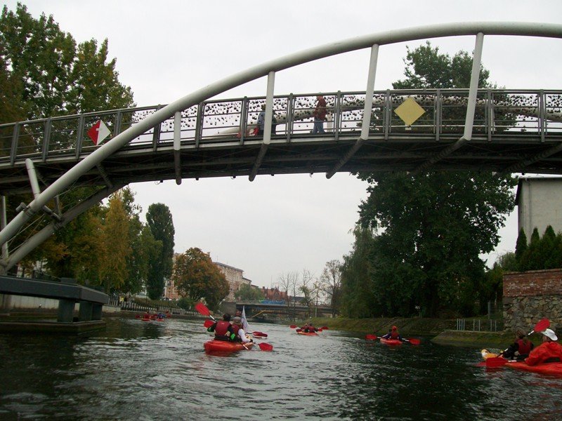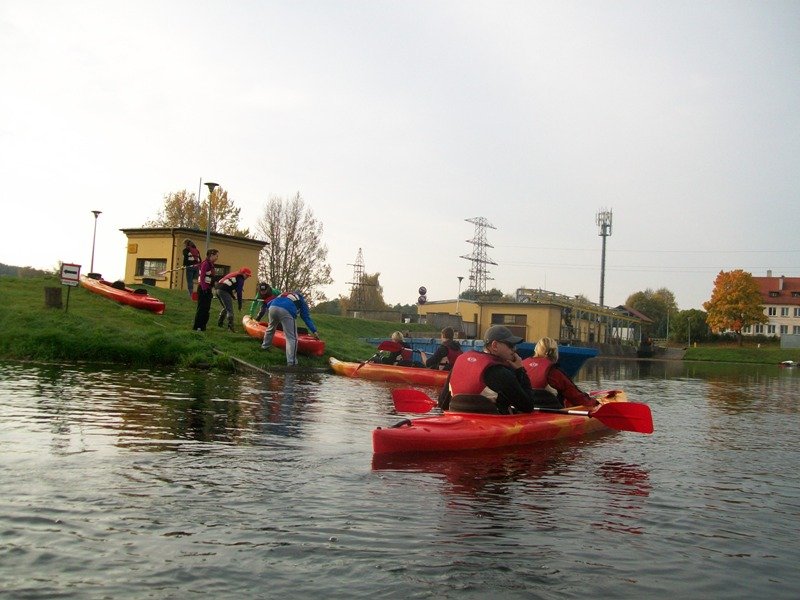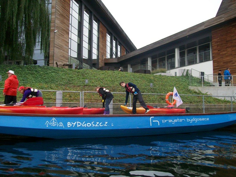 11 października członkowie Stowarzyszenia pod Żaglami wraz z rodzinami udali się na całodzienną wycieczkę do Bydgoszczy. Jak przystało na prawdziwych „wodniaków” głównym celem wyprawy był spływ kajakowy po Brdzie. Po dwu godzinnej podroży do Bydgoszczy dotarliśmy do dzielnicy Smukała, gdzie rozpoczęliśmy wodną przygodę. Na samym początku, przy elektrowni wodnej czekała nas przenośka. Sprawnie ominęliśmy przeszkodę i ruszyliśmy w dalszą drogę, płynąc wartkim nurtem Brdy. Woda w rzece była nieskazitelnie czysta co dawało nam możliwość obserwacji podwodnego świata. Była także sposobność obserwacji pięknych barw polskiej jesieni wraz z otaczającym nas światem ornitologicznym. Po przepłynięciu ok. 5 km, w okolicach bydgoskiej dzielnicy Jachcie odbyło się ognisko, na którym gościliśmy seniorkę Bydgoszczy – Panią Bogumiłę, która pomogła nam w zorganizowaniu terenu pod ognisko i umiliła nam czas opowieściami na temat miasta i historii związanej z Brdą. Po mile spędzonym czasie i wręczeniu małych upominków uczestnikom spływu, udaliśmy się w dalszą kajakarską podróż w kierunku centrum Bydgoszczy, gdzie podziwialiśmy miasto od strony rzeki, oglądając piękne historyczne budowle jak np.: mosty kolejowe, budynki przychodni kolejowej, śluzę z 1908 r.oraz spichrza wraz z panorama starówki. W końcowym etapie spływu czekała na nas jeszcze jedna przenośka – na rzecze Młynówce (zakolu Brdy), przy Przystani wodnej. Nie obyło się bez pamiątkowych zdjęć pod „Przechodzącym przez rzekę” - rzeźbą zawieszoną na linie, balansującą nad rzeką Brdą, w pobliżu mostu im. Jerzego Sulimy-Kamińskiego. Spływ kajakowy zakończyliśmy na Wyspie Młyńskiej. Po załadowaniu kajaków na przyczepę ruszyliśmy w kierunku bydgoskich muzeów. Zwiedzanie rozpoczęliśmy od Muzeum Leona Wyczółkowskiego, gdzie Pani przewodnik wprowadziła nas w klimat XIX w. malarstwa artysty, w którym został przedstawiony świat malarza portrecisty i rodzinnego domu. W muzeum mogliśmy zaobserwować oryginalne rzeczy: meble, ordery, zdjęcia, grafiki z pracowni Leona Wyczółkowskiego. Udaliśmy się również do Muzeum Okręgowego, gdzie była czasowa wystawa związana z kanałem bydgoskim, który w tym roku obchodzi swój jubileusz. Po wysłuchaniu historii kanału i żeglugi śródlądowej udaliśmy się do Muzeum Archeologicznego, w którym zostały przedstawione eksponaty z okresu średniowiecza i początków kształtowania się osadnictwa wczesnomiejskiego miasta Bydgoszczy. Eksponaty zebrane w muzeum zostały wykopane z wykopalisk archeologiczny z okolic m.in. miasta Bydgoszczy, Fordonu, Pakości, Świecia, Inowrocławia. Muzeum Archeologiczne zaprezentowało nam również formę pokazów multimedialnych, w których można było m.in.: układać cyfrowe puzzle, zrobić sobie pamiątkowe zdjęcie w zbroi rycerskiej czy przeglądać się w cyfrowej studni. Na koniec udaliśmy się do barki Lemara, która jest wodowana na Brdzie, gdzie mogliśmy dowiedzieć się o znaczeniu barek w żegludze śródlądowej i życiu rodzinnym szypera. W końcowej części wyprawy udaliśmy się do klubu żeglarskiego „Kubryk”, gdzie we wspólnym gronie, przy ciepłym posiłku mogliśmy podsumować tegoroczne spływy i działalność stowarzyszenia. Na koniec przeszliśmy starówkę podziwiając zabudowę miejską wraz z Kościołem Farnym i z wielkim sentymentem, zachowując w pamięci piękno miasta zostawiliśmy Bydgoszcz z nadzieją, że w niedługim czasie tu wrócimy. Szczególne podziękowania dla Izy i Macieja za zorganizowanie spływu - było super. Dziękujemy!!! Serdeczne podziękowania dla Stowarzyszenia Światowid i sponsorów, dzięki którym udało się zorganizować wyprawę.