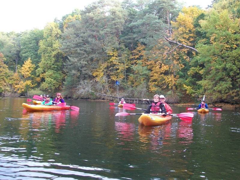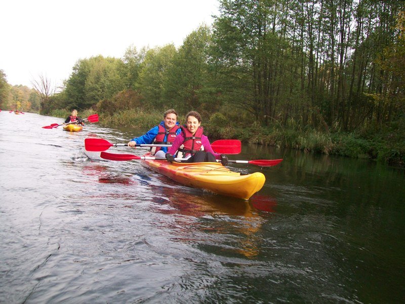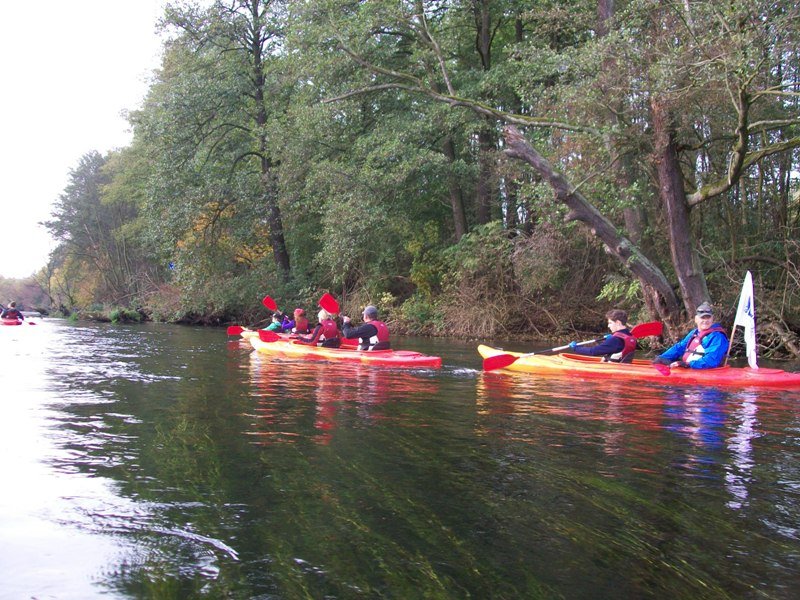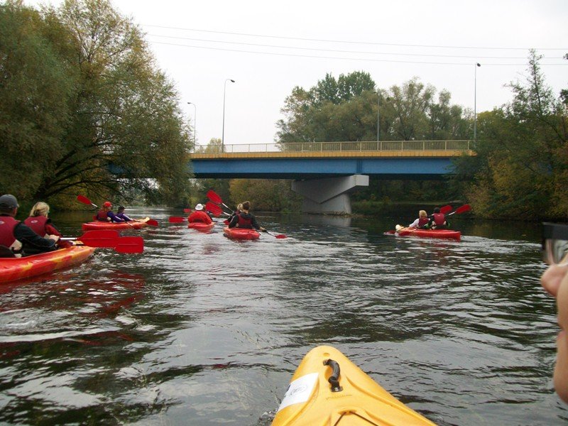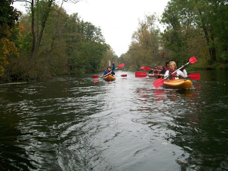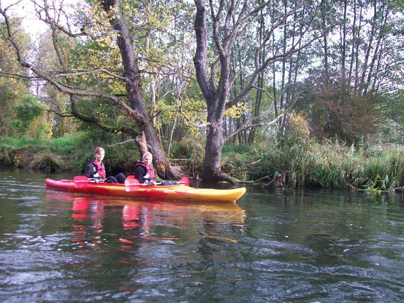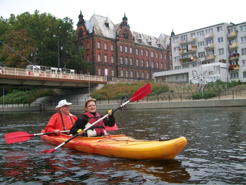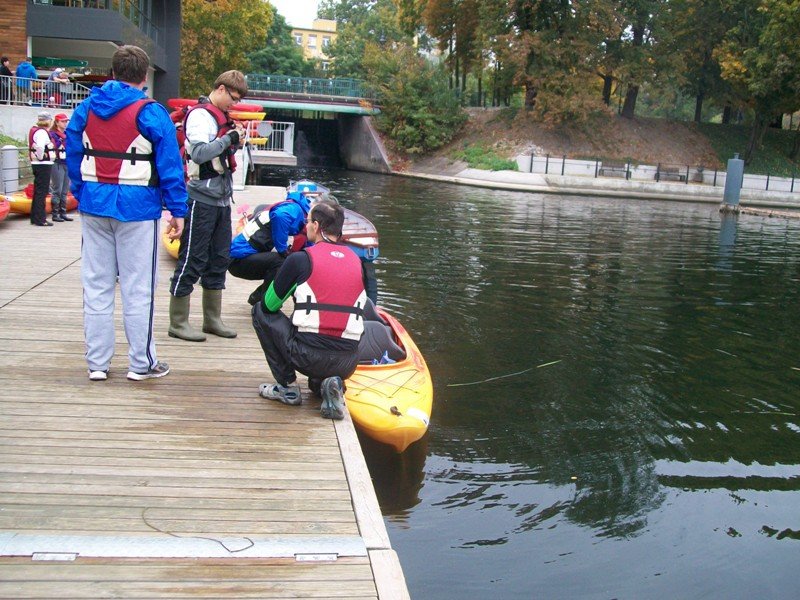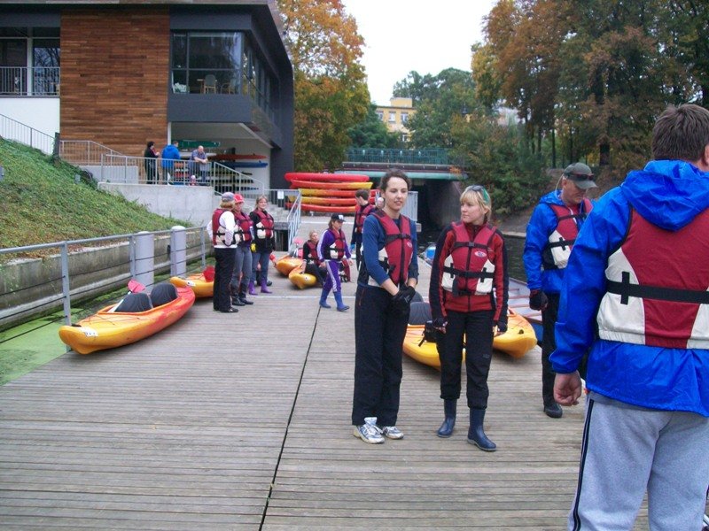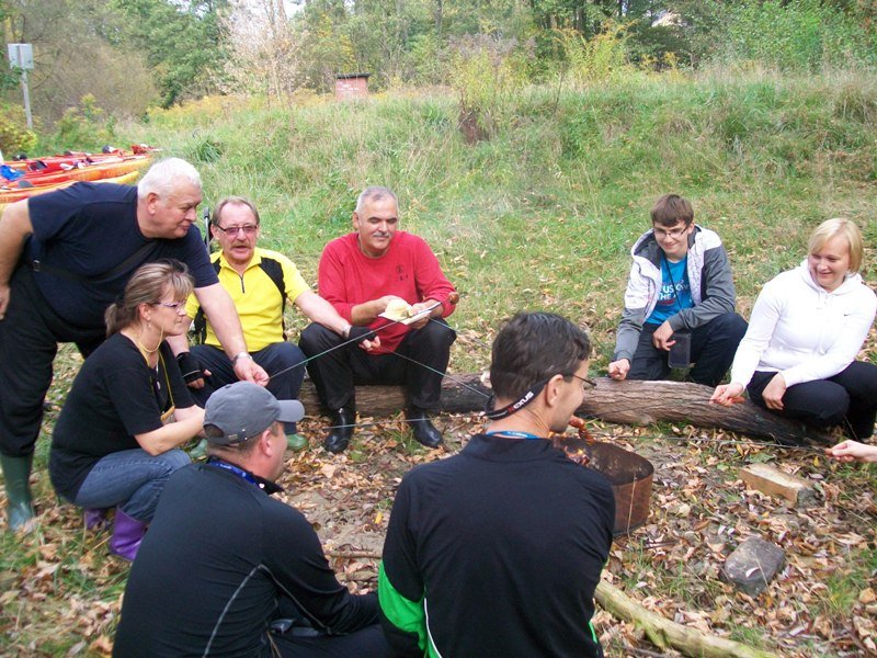 11 października członkowie Stowarzyszenia pod Żaglami wraz z rodzinami udali się na całodzienną wycieczkę do Bydgoszczy. Jak przystało na prawdziwych „wodniaków” głównym celem wyprawy był spływ kajakowy po Brdzie. Po dwu godzinnej podroży do Bydgoszczy dotarliśmy do dzielnicy Smukała, gdzie rozpoczęliśmy wodną przygodę. Na samym początku, przy elektrowni wodnej czekała nas przenośka. Sprawnie ominęliśmy przeszkodę i ruszyliśmy w dalszą drogę, płynąc wartkim nurtem Brdy. Woda w rzece była nieskazitelnie czysta co dawało nam możliwość obserwacji podwodnego świata. Była także sposobność obserwacji pięknych barw polskiej jesieni wraz z otaczającym nas światem ornitologicznym. Po przepłynięciu ok. 5 km, w okolicach bydgoskiej dzielnicy Jachcie odbyło się ognisko, na którym gościliśmy seniorkę Bydgoszczy – Panią Bogumiłę, która pomogła nam w zorganizowaniu terenu pod ognisko i umiliła nam czas opowieściami na temat miasta i historii związanej z Brdą. Po mile spędzonym czasie i wręczeniu małych upominków uczestnikom spływu, udaliśmy się w dalszą kajakarską podróż w kierunku centrum Bydgoszczy, gdzie podziwialiśmy miasto od strony rzeki, oglądając piękne historyczne budowle jak np.: mosty kolejowe, budynki przychodni kolejowej, śluzę z 1908 r.oraz spichrza wraz z panorama starówki. W końcowym etapie spływu czekała na nas jeszcze jedna przenośka – na rzecze Młynówce (zakolu Brdy), przy Przystani wodnej. Nie obyło się bez pamiątkowych zdjęć pod „Przechodzącym przez rzekę” - rzeźbą zawieszoną na linie, balansującą nad rzeką Brdą, w pobliżu mostu im. Jerzego Sulimy-Kamińskiego. Spływ kajakowy zakończyliśmy na Wyspie Młyńskiej. Po załadowaniu kajaków na przyczepę ruszyliśmy w kierunku bydgoskich muzeów. Zwiedzanie rozpoczęliśmy od Muzeum Leona Wyczółkowskiego, gdzie Pani przewodnik wprowadziła nas w klimat XIX w. malarstwa artysty, w którym został przedstawiony świat malarza portrecisty i rodzinnego domu. W muzeum mogliśmy zaobserwować oryginalne rzeczy: meble, ordery, zdjęcia, grafiki z pracowni Leona Wyczółkowskiego. Udaliśmy się również do Muzeum Okręgowego, gdzie była czasowa wystawa związana z kanałem bydgoskim, który w tym roku obchodzi swój jubileusz. Po wysłuchaniu historii kanału i żeglugi śródlądowej udaliśmy się do Muzeum Archeologicznego, w którym zostały przedstawione eksponaty z okresu średniowiecza i początków kształtowania się osadnictwa wczesnomiejskiego miasta Bydgoszczy. Eksponaty zebrane w muzeum zostały wykopane z wykopalisk archeologiczny z okolic m.in. miasta Bydgoszczy, Fordonu, Pakości, Świecia, Inowrocławia. Muzeum Archeologiczne zaprezentowało nam również formę pokazów multimedialnych, w których można było m.in.: układać cyfrowe puzzle, zrobić sobie pamiątkowe zdjęcie w zbroi rycerskiej czy przeglądać się w cyfrowej studni. Na koniec udaliśmy się do barki Lemara, która jest wodowana na Brdzie, gdzie mogliśmy dowiedzieć się o znaczeniu barek w żegludze śródlądowej i życiu rodzinnym szypera. W końcowej części wyprawy udaliśmy się do klubu żeglarskiego „Kubryk”, gdzie we wspólnym gronie, przy ciepłym posiłku mogliśmy podsumować tegoroczne spływy i działalność stowarzyszenia. Na koniec przeszliśmy starówkę podziwiając zabudowę miejską wraz z Kościołem Farnym i z wielkim sentymentem, zachowując w pamięci piękno miasta zostawiliśmy Bydgoszcz z nadzieją, że w niedługim czasie tu wrócimy. Szczególne podziękowania dla Izy i Macieja za zorganizowanie spływu - było super. Dziękujemy!!! Serdeczne podziękowania dla Stowarzyszenia Światowid i sponsorów, dzięki którym udało się zorganizować wyprawę.
