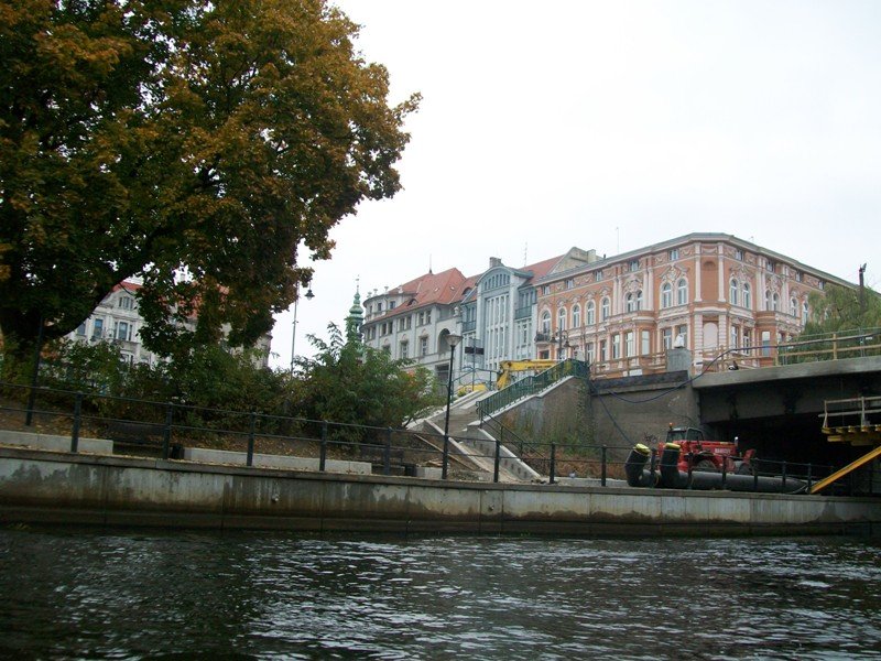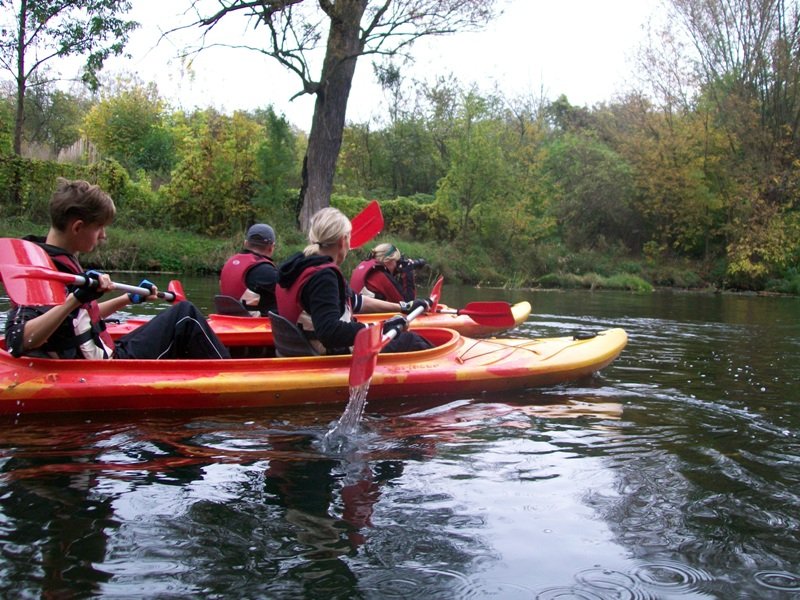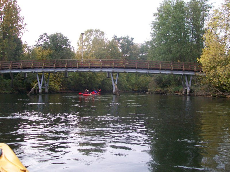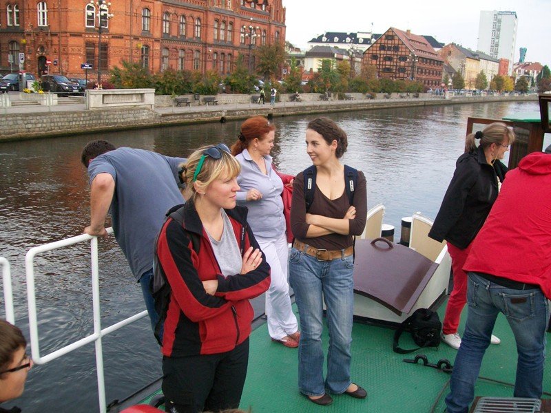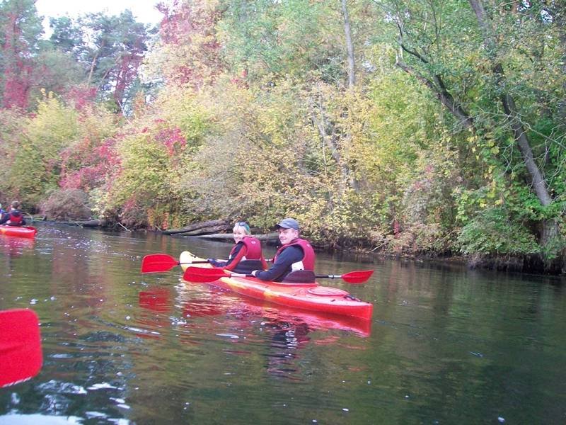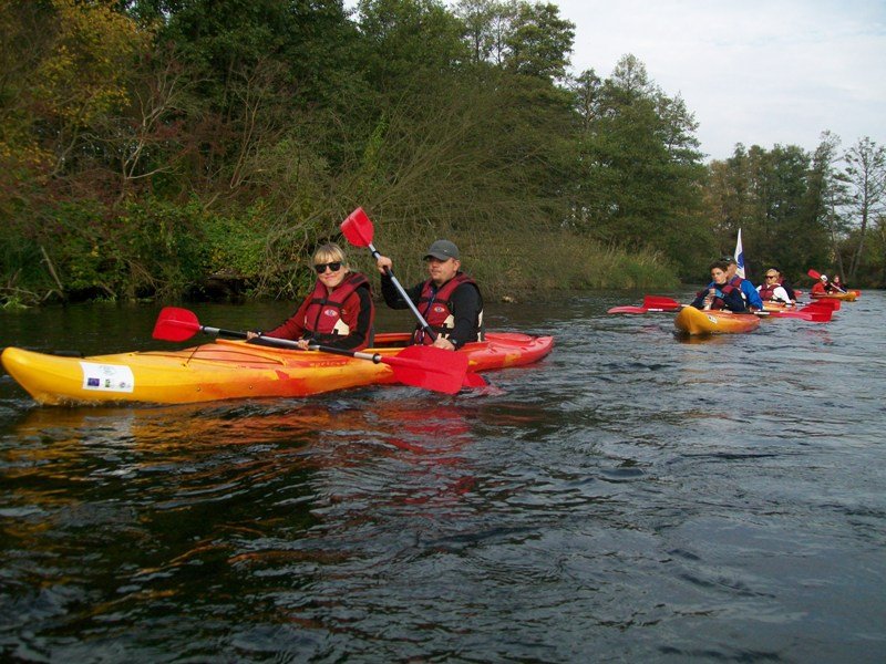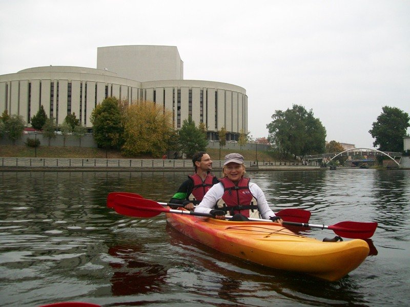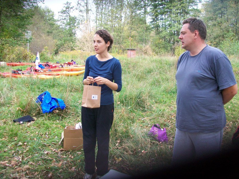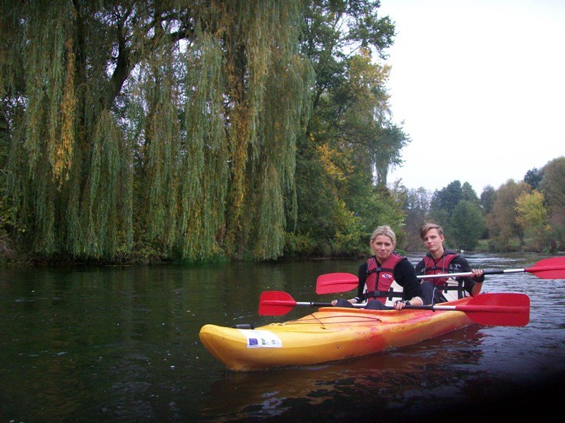 11 października członkowie Stowarzyszenia pod Żaglami wraz z rodzinami udali się na całodzienną wycieczkę do Bydgoszczy. Jak przystało na prawdziwych „wodniaków” głównym celem wyprawy był spływ kajakowy po Brdzie. Po dwu godzinnej podroży do Bydgoszczy dotarliśmy do dzielnicy Smukała, gdzie rozpoczęliśmy wodną przygodę. Na samym początku, przy elektrowni wodnej czekała nas przenośka. Sprawnie ominęliśmy przeszkodę i ruszyliśmy w dalszą drogę, płynąc wartkim nurtem Brdy. Woda w rzece była nieskazitelnie czysta co dawało nam możliwość obserwacji podwodnego świata. Była także sposobność obserwacji pięknych barw polskiej jesieni wraz z otaczającym nas światem ornitologicznym. Po przepłynięciu ok. 5 km, w okolicach bydgoskiej dzielnicy Jachcie odbyło się ognisko, na którym gościliśmy seniorkę Bydgoszczy – Panią Bogumiłę, która pomogła nam w zorganizowaniu terenu pod ognisko i umiliła nam czas opowieściami na temat miasta i historii związanej z Brdą. Po mile spędzonym czasie i wręczeniu małych upominków uczestnikom spływu, udaliśmy się w dalszą kajakarską podróż w kierunku centrum Bydgoszczy, gdzie podziwialiśmy miasto od strony rzeki, oglądając piękne historyczne budowle jak np.: mosty kolejowe, budynki przychodni kolejowej, śluzę z 1908 r.oraz spichrza wraz z panorama starówki. W końcowym etapie spływu czekała na nas jeszcze jedna przenośka – na rzecze Młynówce (zakolu Brdy), przy Przystani wodnej. Nie obyło się bez pamiątkowych zdjęć pod „Przechodzącym przez rzekę” - rzeźbą zawieszoną na linie, balansującą nad rzeką Brdą, w pobliżu mostu im. Jerzego Sulimy-Kamińskiego. Spływ kajakowy zakończyliśmy na Wyspie Młyńskiej. Po załadowaniu kajaków na przyczepę ruszyliśmy w kierunku bydgoskich muzeów. Zwiedzanie rozpoczęliśmy od Muzeum Leona Wyczółkowskiego, gdzie Pani przewodnik wprowadziła nas w klimat XIX w. malarstwa artysty, w którym został przedstawiony świat malarza portrecisty i rodzinnego domu. W muzeum mogliśmy zaobserwować oryginalne rzeczy: meble, ordery, zdjęcia, grafiki z pracowni Leona Wyczółkowskiego. Udaliśmy się również do Muzeum Okręgowego, gdzie była czasowa wystawa związana z kanałem bydgoskim, który w tym roku obchodzi swój jubileusz. Po wysłuchaniu historii kanału i żeglugi śródlądowej udaliśmy się do Muzeum Archeologicznego, w którym zostały przedstawione eksponaty z okresu średniowiecza i początków kształtowania się osadnictwa wczesnomiejskiego miasta Bydgoszczy. Eksponaty zebrane w muzeum zostały wykopane z wykopalisk archeologiczny z okolic m.in. miasta Bydgoszczy, Fordonu, Pakości, Świecia, Inowrocławia. Muzeum Archeologiczne zaprezentowało nam również formę pokazów multimedialnych, w których można było m.in.: układać cyfrowe puzzle, zrobić sobie pamiątkowe zdjęcie w zbroi rycerskiej czy przeglądać się w cyfrowej studni. Na koniec udaliśmy się do barki Lemara, która jest wodowana na Brdzie, gdzie mogliśmy dowiedzieć się o znaczeniu barek w żegludze śródlądowej i życiu rodzinnym szypera. W końcowej części wyprawy udaliśmy się do klubu żeglarskiego „Kubryk”, gdzie we wspólnym gronie, przy ciepłym posiłku mogliśmy podsumować tegoroczne spływy i działalność stowarzyszenia. Na koniec przeszliśmy starówkę podziwiając zabudowę miejską wraz z Kościołem Farnym i z wielkim sentymentem, zachowując w pamięci piękno miasta zostawiliśmy Bydgoszcz z nadzieją, że w niedługim czasie tu wrócimy. Szczególne podziękowania dla Izy i Macieja za zorganizowanie spływu - było super. Dziękujemy!!! Serdeczne podziękowania dla Stowarzyszenia Światowid i sponsorów, dzięki którym udało się zorganizować wyprawę.