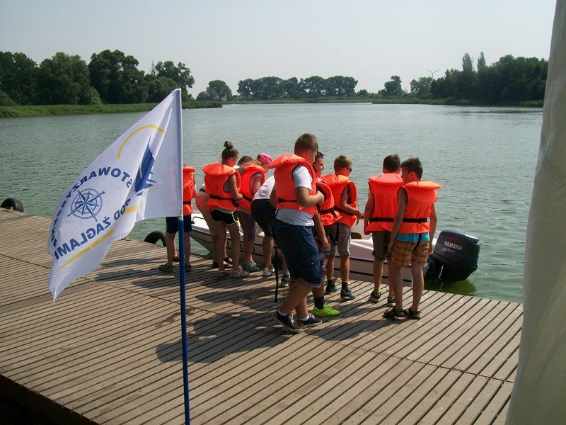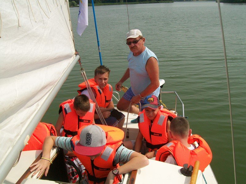 W dniu 7 sierpnia br. nasze stowarzyszenie uatrakcyjniło dzieciom pobyt na półkoloniach organizowanych przez Dom Kultury w Trzemesznie. Główną atrakcją w tym dniu były rejsy jachtem żaglowym oraz jachtem motorowodnym po jeziorze Popielewskim. Przed wyruszeniem w swój rejs wszyscy uczestnicy zostali zapoznani z zasadami bezpiecznego przebywania na jachcie i nad wodą oraz zostali wyposażeni w kamizelki ratunkowe. Ponadto uczestnicy mogli poznać zasady obsługi w/w jachtów oraz „spojrzeć” na brzeg od strony wody.