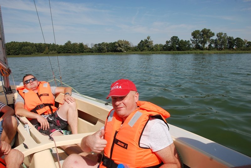 Tradycyjnie jak co roku w sierpniowy weekend firma z Gniezna przygotowała imprezę integracyjną dla swoich pracowników. W tym roku całą organizacją weekendu integracyjnego zajęło się nasze stowarzyszenie. W pierwszym dniu przygotowaliśmy dla uczestników grę paintballową. W drugim dniu zorganizowaliśmy dla uczestników rejsy jachtami żaglowymi po jeziorze Popielewskim oraz rejsy kajakami. Po wcześniejszej odprawie na której omówiono zasady bezpieczeństwa na wodzie, uczestnicy zostali wyposażeni w kamizelki ratunkowe i asekuracyjne, po czym wyruszyli w swój pierwszy rejs. Poza omówieniem walorów przyrodniczych akwenu oraz historii Trzemeszna, niektórzy uczestnicy zasiedli za sterami jachtu doświadczając smak żeglarskiej przygody. Pogoda dopisała. Cieszymy się, że mogliśmy być organizatorem weekendu integracyjnego dla pracowników firmy. Jest to nowy rozdział w naszej działalności.