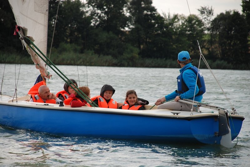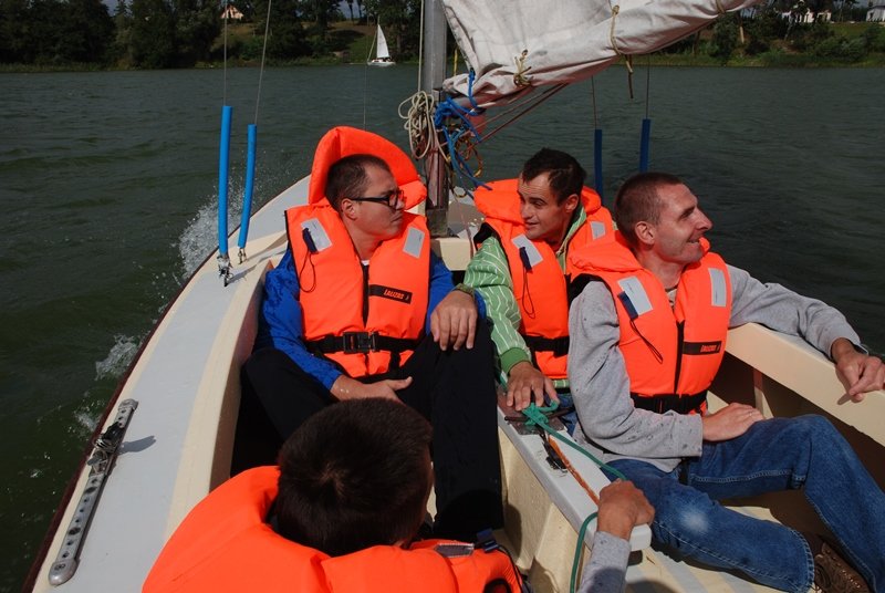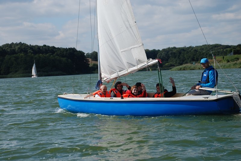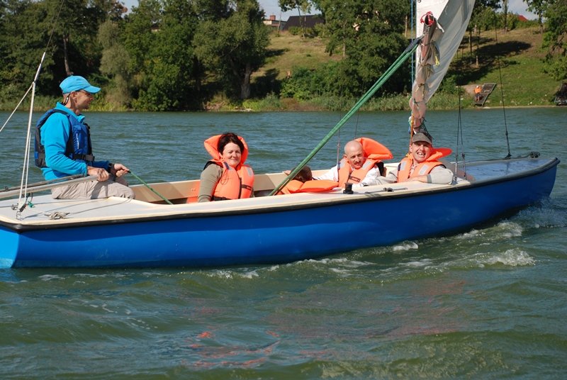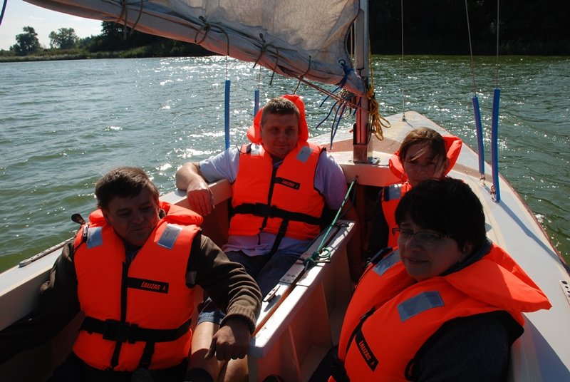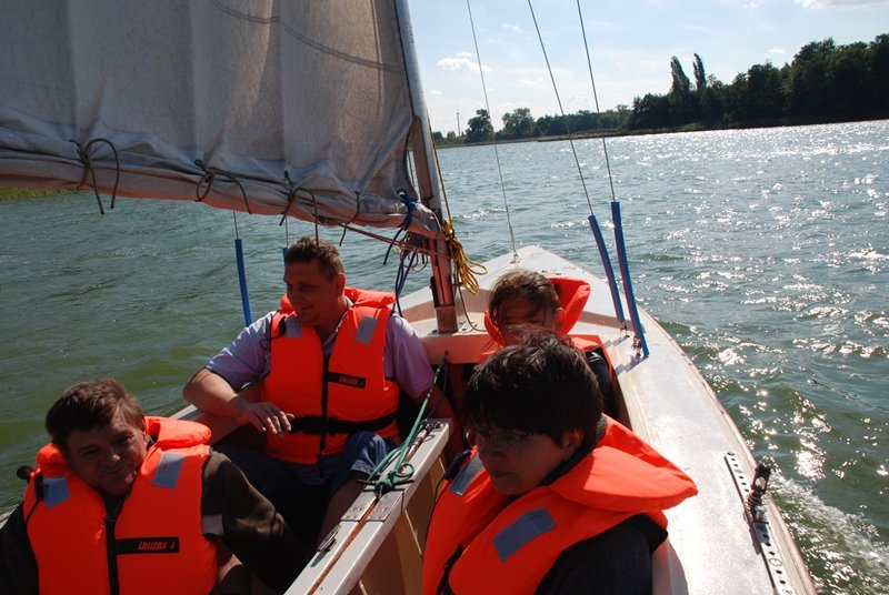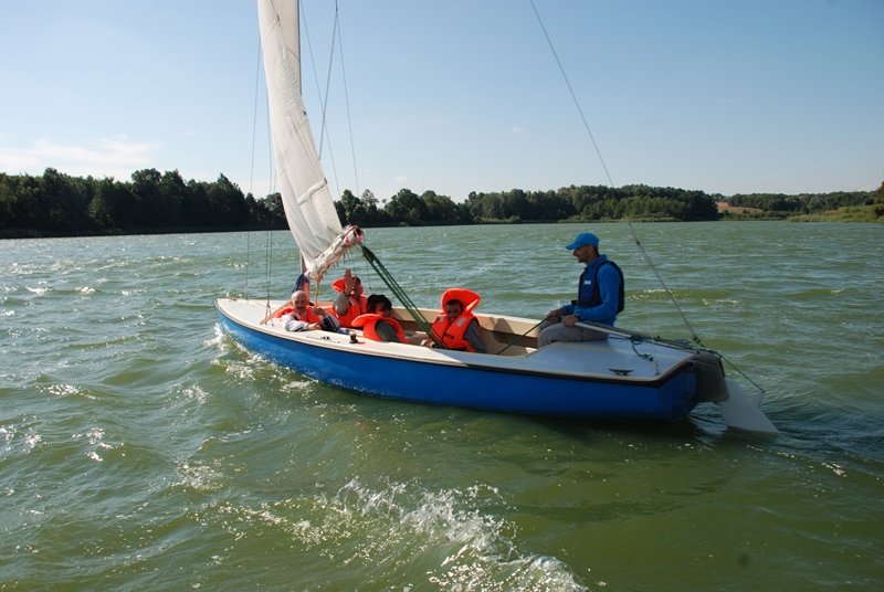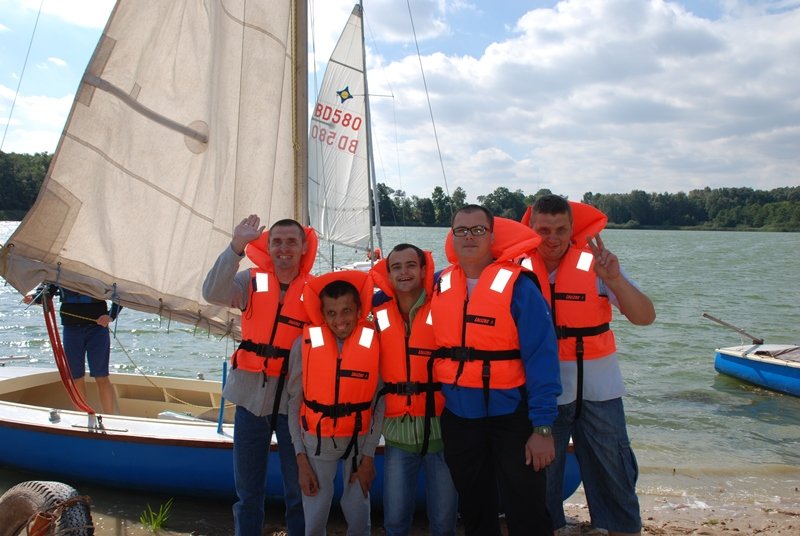 W dniu 05.09.2015r. Stowarzyszenie pod Żaglami zorganizowało rejsy na jachtach żaglowych w ramach projektu „Żagle dla wszystkich”. Projekt jest dofinansowany ze środków Programu "Działaj Lokalnie IX" Polsko - Amerykańskiej Fundacji Wolności realizowanego przez Akademię Rozwoju Filantropii w Polsce oraz Ośrodka Działaj Lokalnie Stowarzyszenia Światowid. Głównym celem projektu jest wzbudzenie zapału do aktywnego spędzania czasu oraz poznania zasad bezpieczeństwa na wodzie oraz rozwój turystyki żeglarskiej na akwenach wodnych gminy Trzemeszno. W dniu dzisiejszym naszymi uczestnikami byli podopieczni z Środowiskowego Domu Samopomocy w Trzemesznie. Przed rejsami odbyła się odprawa, gdzie wszyscy uczestnicy zostali zapoznani z zasadami bezpiecznego zachowania na wodziei zostali wyposażeni w kamizelki ratunkowe. Następnie uczestnicy projektu zostali podzieleni na niewielkie grupy. Część osób wsiadło do jachtów żaglowych i ruszyło w swój pierwszy rejs żeglarski. Natomiast dla tych, którzy pozostali na brzegu, czekała niespodzianka w postaci zabawy, którą przygotowali instruktorzy ZHP, będący na kursie podharcmistrza organizowanym przez Komendę Chorągwi w Poznaniu. Po rejsach i zabawie wszyscy uczestnicy przy ognisku mogli posilić się pieczonymi kiełbaskami. Na zakończenie zrobiliśmy sobie wspólne pamiątkowe zdjęcie. Wszyscy otrzymali materiały edukacyjne akcji „Bezpieczna Woda” , której ogólnopolskim koordynatorem jest Ministerstwo Sportu i Turystyki we współpracy z Wodnym Ochotniczym Pogotowiem Ratunkowym, Ministerstwem Edukacji Narodowej, Ministerstwem Spraw Wewnętrznych i Ministerstwem Zdrowia, przy wsparciu Komendy Głównej Policji, Centrum Turystyki Wodnej PTTK i Polskiej Organizacji Turystycznej.