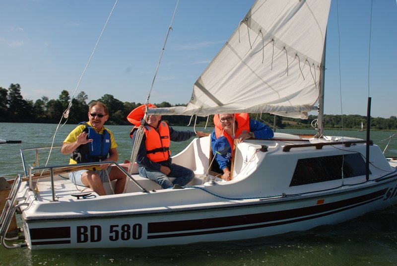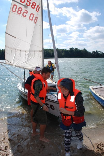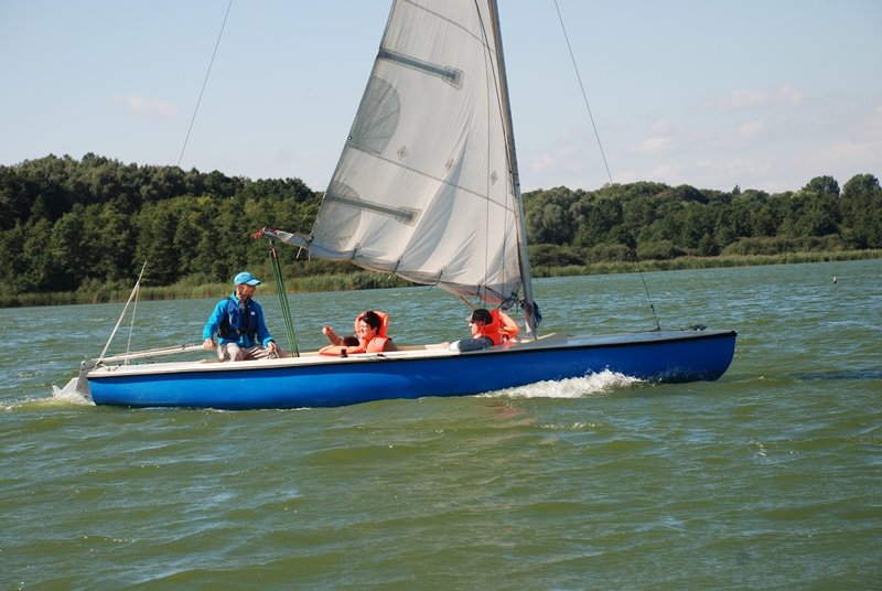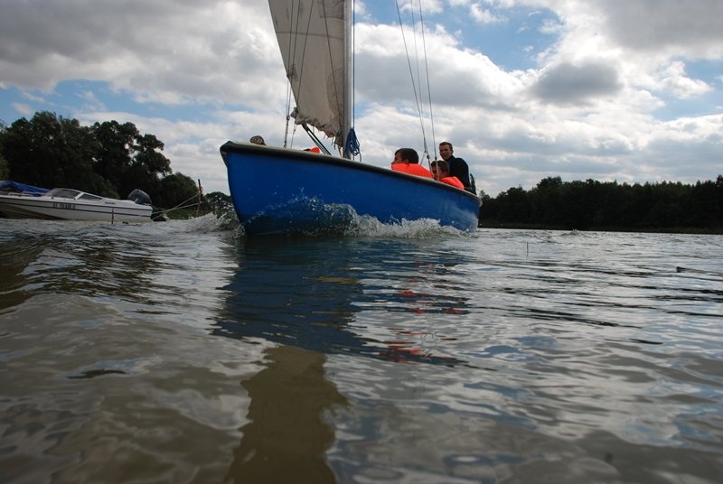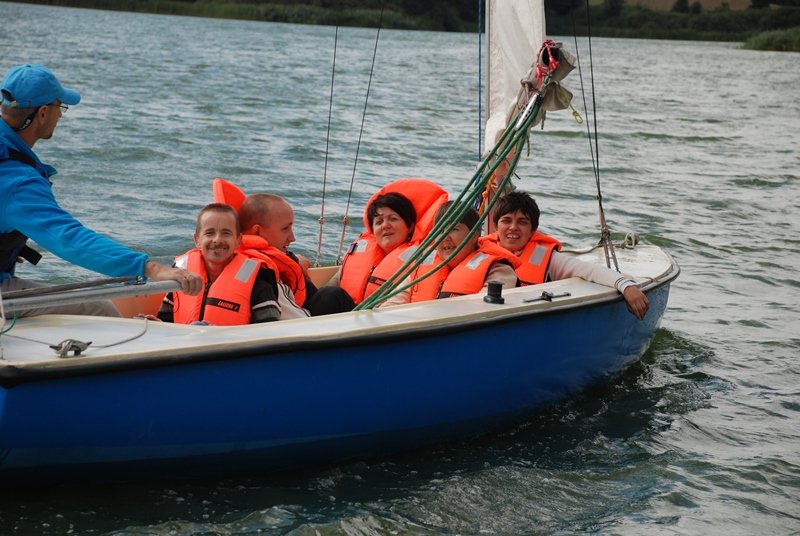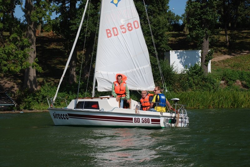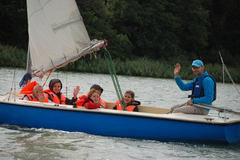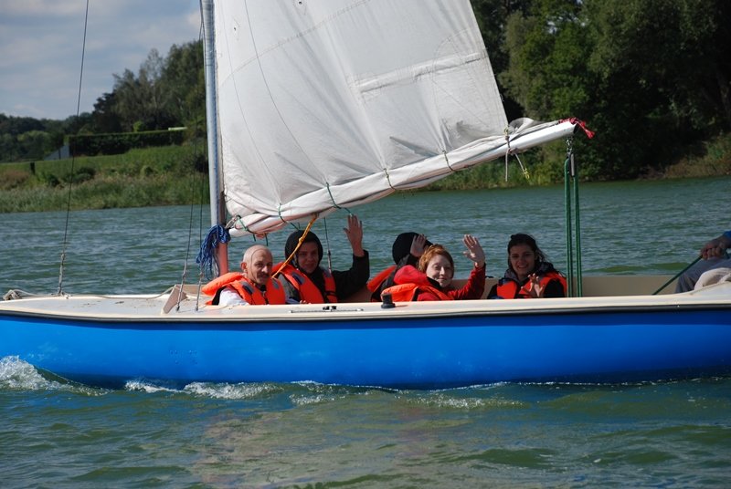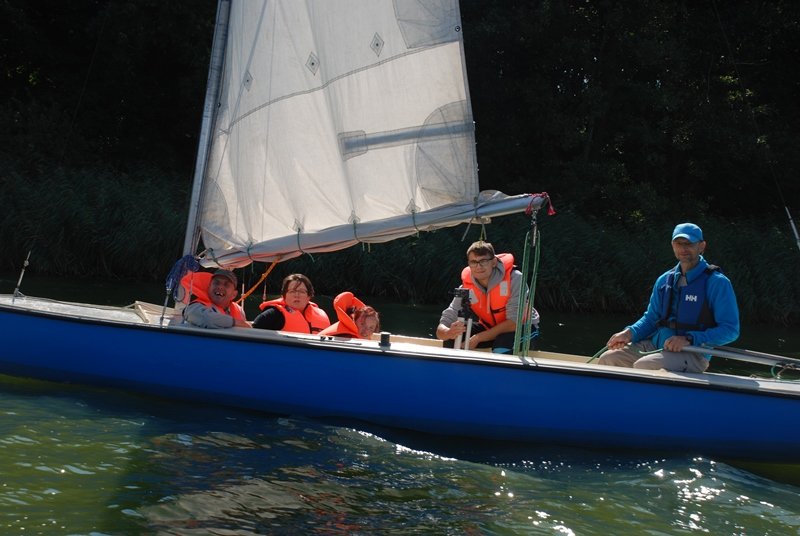 W dniu 05.09.2015r. Stowarzyszenie pod Żaglami zorganizowało rejsy na jachtach żaglowych w ramach projektu „Żagle dla wszystkich”. Projekt jest dofinansowany ze środków Programu "Działaj Lokalnie IX" Polsko - Amerykańskiej Fundacji Wolności realizowanego przez Akademię Rozwoju Filantropii w Polsce oraz Ośrodka Działaj Lokalnie Stowarzyszenia Światowid. Głównym celem projektu jest wzbudzenie zapału do aktywnego spędzania czasu oraz poznania zasad bezpieczeństwa na wodzie oraz rozwój turystyki żeglarskiej na akwenach wodnych gminy Trzemeszno. W dniu dzisiejszym naszymi uczestnikami byli podopieczni z Środowiskowego Domu Samopomocy w Trzemesznie. Przed rejsami odbyła się odprawa, gdzie wszyscy uczestnicy zostali zapoznani z zasadami bezpiecznego zachowania na wodziei zostali wyposażeni w kamizelki ratunkowe. Następnie uczestnicy projektu zostali podzieleni na niewielkie grupy. Część osób wsiadło do jachtów żaglowych i ruszyło w swój pierwszy rejs żeglarski. Natomiast dla tych, którzy pozostali na brzegu, czekała niespodzianka w postaci zabawy, którą przygotowali instruktorzy ZHP, będący na kursie podharcmistrza organizowanym przez Komendę Chorągwi w Poznaniu. Po rejsach i zabawie wszyscy uczestnicy przy ognisku mogli posilić się pieczonymi kiełbaskami. Na zakończenie zrobiliśmy sobie wspólne pamiątkowe zdjęcie. Wszyscy otrzymali materiały edukacyjne akcji „Bezpieczna Woda” , której ogólnopolskim koordynatorem jest Ministerstwo Sportu i Turystyki we współpracy z Wodnym Ochotniczym Pogotowiem Ratunkowym, Ministerstwem Edukacji Narodowej, Ministerstwem Spraw Wewnętrznych i Ministerstwem Zdrowia, przy wsparciu Komendy Głównej Policji, Centrum Turystyki Wodnej PTTK i Polskiej Organizacji Turystycznej.