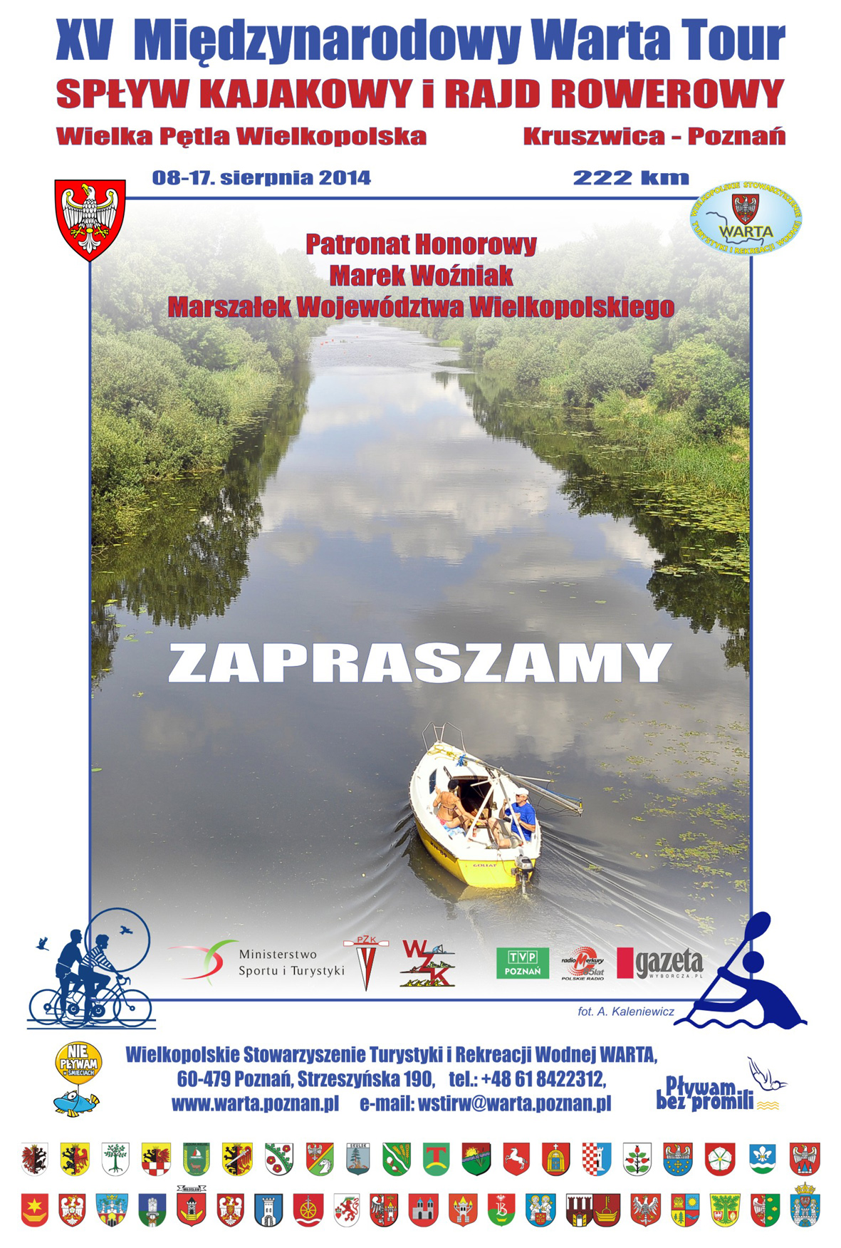 Po raz kolejny Wielkopolskie Stowarzyszenie Turystyki i Rekreacji Wodnej WARTA serdecznie zaprasza na Międzynarodowy Spływ Kajakowy i Rajd Rowerowy WARTA TOUR.